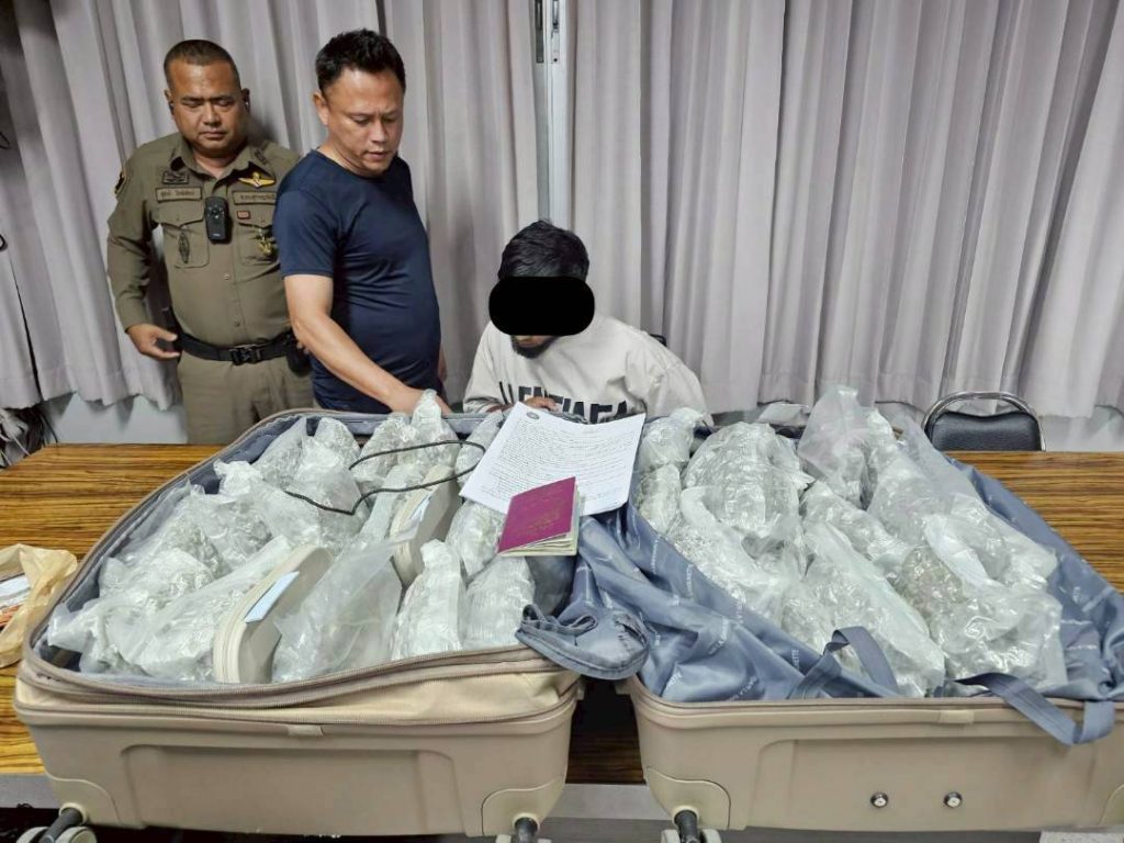 กล่าวคือเมื่อวันที่ 14 มีนาคม 2568 เวลาประมาณ 08.00 น.ได้รับแจ้งจากสายการบินบางกอกแอร์เวย์ว่าทางสายการบินได้เก็บรักษากระเป๋าสัมภาระของชาวต่างชาติไว้ จำนวน 1 ใบ เนื่องจากไม่มีผู้แสดงตน ตรวจสอบพบเบื้องต้นคาดว่ามีวัตถุต้องสงสัยว่าจะมีสิ่งของผิดกฎหมายหรือสิ่งของที่ได้มาจากการกระทำผิดบรรจุอยู่ภายในกระเป๋าเดินทาง จึงได้ร่วมทำการตรวจสอบทราบชื่อจากบัตรติดกระเป๋าเดินทางระบุชื่อ บุคคลต่างด้าว ซึ่งเป็นสัมภาระของผู้โดยสารสายการบินบางกอกแอร์เวย์ เที่ยวบินที่ PG805 เมื่อวันที่ 14 มีนาคม 2568 ซึ่งกำหนดเดินทางจากออกท่าอากาศยานนานาชาติสมุยไปยังท่าอากาศยานยานาชาติฮ่องกง(HKG)ประเทศฮ่องกง และเิดนทางต่อไปปลายทาง ท่าอากาศยานฮีทโธรว์(LHR) ประเทศสหราชอาณาจักร หลังเจ้าหน้าที่ชุดสืบสวนฯและเจ้าหน้าที่ศุลกากรได้เข้าทำการตรวจสอบแล้วเบื้องต้นแล้วได้ส่งให้เจ้าหน้าที่ประจำท่าอากาศยานยานาชาติสมุยเก็บรักษาไว้ พร้อมตรวจสอบข้อมูลที่พักศัยของคนต่างด้าวรายดังกล่าวด้วยระบบเทคโนโลยีสารสนเทศของสำนักงานตรวจคนเข้าเมือง(Pibics) ทราบว่าพักอาศัยที่โรงแรมเดอะสเตย์ เฉวง ม.2 ต.บ่อผุด อ.เกาะสมุย จว.สุราษฎร์ธานี เมื่อเจ้าหน้าที่เดินทางไปถึงไม่พบตัวคนต่างด้าวรายดังกล่าว หลังการสืบสวนอย่างต่อเนื่อง จนกระทั่งมาถึงวันนี้เจ้าหน้าที่ชุดสืบสวนฯได้พบตัวคนต่างด้าวรายดังกล่าว พักอาศัยที่โรงแรมพะยอม ปาร์ค ม.4 ต.บ่อผุด อ.เกาะสมุย จว.สุราษฎร์ธานี พร้อมตรวจสอบหนังสือเดินทางพบเป็นบุคคลเดียวกับเจ้าของกระเป๋าต้องสงสัย จึงได้เชิญตัวมายังท่าอากาศยานานาชาติสมุย เพื่อทำการตรวจสอบกระเป๋าสัมภาระสงสัยที่ห้องตรวจสัมภาระโดย คนต่างด้าวได้แสดงความบริสุทธิ์ใจเปิดกระเป๋าด้วยตนเองและพบว่าภายในกระเป๋าใบดังกล่าวบรรจุช่อดอกกัญชาบรรจุถุงพลาสติกใส จำนวน 33 ถุง น้ำหนักรวมสิ่งห่อหุ้มโดยประมาณ 19.14 กิโลกรัม เจ้าหน้าที่ชุดสืบสวนฯจึงได้ตรวจยึดไว้เป็นของกลางพร้อมแจ้งข้อกล่าวหาว่าการกระทำดังกล่าวเป็นความผิดฐาน”พยายามนำออกไปนอกราชอาณาจักรซึ่งของที่ยังมิได้ผ่านพิธีการศุลกากร ตามมาตรา 242 ,มาตรา 252 ประกอบมาตรา 166 และมาตรา 167 แห่งพระราชบัญญัติศุลกากร 2560 และเป็นความผิดตามมาตรา 78 ประกอบมาตรา 46 แห่งพระราชบัญญัติคุ้มครองและส่งเสริมภูมิปัญญาการแพทย์แผนไทย พ.ศ.2542 และประกาศกระทรวงสาธารณสุข เรื่อง สมุนไพรควบคุม(กัญชา) พ.ศ.2565 ลง วันที่ 11 พฤศจิกายน 2565″ พร้อมนำตัวส่งพนักงานสอบสวน สภ.บ่อผุด เพื่อดำเนินคดีตามกฎหมายต่อไป