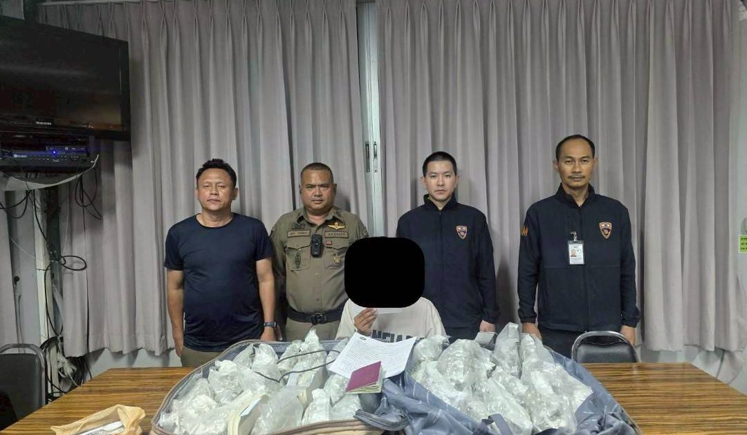 กล่าวคือเมื่อวันที่ 14 มีนาคม 2568 เวลาประมาณ 08.00 น.ได้รับแจ้งจากสายการบินบางกอกแอร์เวย์ว่าทางสายการบินได้เก็บรักษากระเป๋าสัมภาระของชาวต่างชาติไว้ จำนวน 1 ใบ เนื่องจากไม่มีผู้แสดงตน ตรวจสอบพบเบื้องต้นคาดว่ามีวัตถุต้องสงสัยว่าจะมีสิ่งของผิดกฎหมายหรือสิ่งของที่ได้มาจากการกระทำผิดบรรจุอยู่ภายในกระเป๋าเดินทาง จึงได้ร่วมทำการตรวจสอบทราบชื่อจากบัตรติดกระเป๋าเดินทางระบุชื่อ บุคคลต่างด้าว ซึ่งเป็นสัมภาระของผู้โดยสารสายการบินบางกอกแอร์เวย์ เที่ยวบินที่ PG805 เมื่อวันที่ 14 มีนาคม 2568 ซึ่งกำหนดเดินทางจากออกท่าอากาศยานนานาชาติสมุยไปยังท่าอากาศยานยานาชาติฮ่องกง(HKG)ประเทศฮ่องกง และเิดนทางต่อไปปลายทาง ท่าอากาศยานฮีทโธรว์(LHR) ประเทศสหราชอาณาจักร หลังเจ้าหน้าที่ชุดสืบสวนฯและเจ้าหน้าที่ศุลกากรได้เข้าทำการตรวจสอบแล้วเบื้องต้นแล้วได้ส่งให้เจ้าหน้าที่ประจำท่าอากาศยานยานาชาติสมุยเก็บรักษาไว้ พร้อมตรวจสอบข้อมูลที่พักศัยของคนต่างด้าวรายดังกล่าวด้วยระบบเทคโนโลยีสารสนเทศของสำนักงานตรวจคนเข้าเมือง(Pibics) ทราบว่าพักอาศัยที่โรงแรมเดอะสเตย์ เฉวง ม.2 ต.บ่อผุด อ.เกาะสมุย จว.สุราษฎร์ธานี เมื่อเจ้าหน้าที่เดินทางไปถึงไม่พบตัวคนต่างด้าวรายดังกล่าว หลังการสืบสวนอย่างต่อเนื่อง จนกระทั่งมาถึงวันนี้เจ้าหน้าที่ชุดสืบสวนฯได้พบตัวคนต่างด้าวรายดังกล่าว พักอาศัยที่โรงแรมพะยอม ปาร์ค ม.4 ต.บ่อผุด อ.เกาะสมุย จว.สุราษฎร์ธานี พร้อมตรวจสอบหนังสือเดินทางพบเป็นบุคคลเดียวกับเจ้าของกระเป๋าต้องสงสัย จึงได้เชิญตัวมายังท่าอากาศยานานาชาติสมุย เพื่อทำการตรวจสอบกระเป๋าสัมภาระสงสัยที่ห้องตรวจสัมภาระโดย คนต่างด้าวได้แสดงความบริสุทธิ์ใจเปิดกระเป๋าด้วยตนเองและพบว่าภายในกระเป๋าใบดังกล่าวบรรจุช่อดอกกัญชาบรรจุถุงพลาสติกใส จำนวน 33 ถุง น้ำหนักรวมสิ่งห่อหุ้มโดยประมาณ 19.14 กิโลกรัม เจ้าหน้าที่ชุดสืบสวนฯจึงได้ตรวจยึดไว้เป็นของกลางพร้อมแจ้งข้อกล่าวหาว่าการกระทำดังกล่าวเป็นความผิดฐาน”พยายามนำออกไปนอกราชอาณาจักรซึ่งของที่ยังมิได้ผ่านพิธีการศุลกากร ตามมาตรา 242 ,มาตรา 252 ประกอบมาตรา 166 และมาตรา 167 แห่งพระราชบัญญัติศุลกากร 2560 และเป็นความผิดตามมาตรา 78 ประกอบมาตรา 46 แห่งพระราชบัญญัติคุ้มครองและส่งเสริมภูมิปัญญาการแพทย์แผนไทย พ.ศ.2542 และประกาศกระทรวงสาธารณสุข เรื่อง สมุนไพรควบคุม(กัญชา) พ.ศ.2565 ลง วันที่ 11 พฤศจิกายน 2565″ พร้อมนำตัวส่งพนักงานสอบสวน สภ.บ่อผุด เพื่อดำเนินคดีตามกฎหมายต่อไป