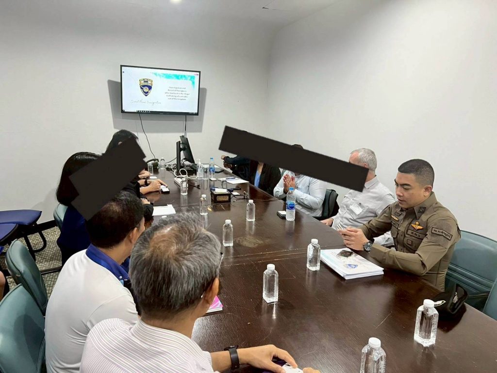 วันที่ 1 เม.ย.2568 เวลา 10.00 น. ว่าที่ พ.ต.อ.นฤวัต พุทธวิโร ผกก.ตม.จว.สุราษฎร์ธานี พร้อมด้วยนายเรืองยศ โตกมลธรรม นายด่านศุลกาการเกาะสมุย ตัวแทนบริษัทบางกอกแอร์เวย์ ได้ร่วมประชุมหารือเกี่ยวกับปัญหาการนำออกช่อดอกกัญชาผ่านช่องทางสนามบินไปยังประเทศอังกฤษ กับ MR.MARK BROOKES ผู้จัดการฝ่ายเอเซียแปซิฟิกของสำนักงานปราบปรามอาชญากรรมแห่งชาติอังกฤษ (NCA) และนางอมารี กุมาร ผู้จัดการฝ่ายโฮมแลนด์ ประจำสำนักงานปราบปรามอาชญากรรมแห่งชาติอังกฤษ (NCA) ทั้งนี้ พ.ต.อ.นฤวัต พุทธวิโร ได้นำเสนอผลการปฎิบัติกรณีจับกุมขบวนการคนต่างชาติที่พยายามนำออกช่อดอกกัญชาออกนอกราชอาณาจักรพร้อมของกลางตรวจยึดในคดี และขยายผลกลุ่มบุคคลต่างชาติที่เกี่ยวข้อง ณ ห้องประชุม 2 ท่าอากาศยานนานาชาติสมุย