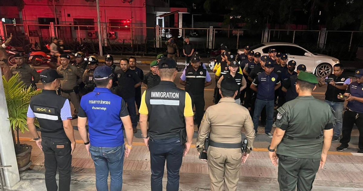 วันที่ 5 พ.ค.2567 เวลา 23.00 น. พ.ต.ท.วัสส์ธนภูมิ กุลจิตติชุติพร รอง ผกก.ตม.จว.สุราษฎร์ธานี, ร.ต.อ.อรุณ มูสิกิ้ม รอง สว.ตม.จว.สุราษฎร์ธานี,ร.ต.ท.ธรรมนูญ แพน้อย รอง สว.(ป.) ตม.จว.สุราษฎร์ธานี พร้อมด้วย จนท.สืบสวน ชป.3 บูรณาการร่วมกับเจ้าหน้าที่ตำรวจ สภ.บ่อผุด,เจ้าหน้าที่ฝ่ายปกครอง,ตำรวจท่องเที่ยว,กอ.รมน.ภ.๔ และ สน.พท.เกาะสมุย ร่วมปล่อยแถว ตามแผนป้องกันปราบปรามอาชญากรรม ภ.๘ ปีงบประมาณ พ.ศ.๒๕๖๗ “ป้องราษฎร์ ปราบภัย ทันสมัย ห่วงใย ประชาชน” อันดามัน ๐๑/๒๕๖๗ ลง ๘ ม.ค.๖๗ โดย ให้ทุกหน่วยเข้มงวดกวดขันอบายมุขทุกประเภทในพื้นที่ อย่างจริงจัง โดยเฉพาะสถานบริการ สถานประกอบการที่มีลักษณะคล้ายสถานบริการรอบสถานศึกษา และ แหล่งมั่วสุมอื่นๆ ณ บริเวณด้านหน้า สภ.บ่อผุด อ.เกาะสมุย จว.สุราษฎร์ธานี