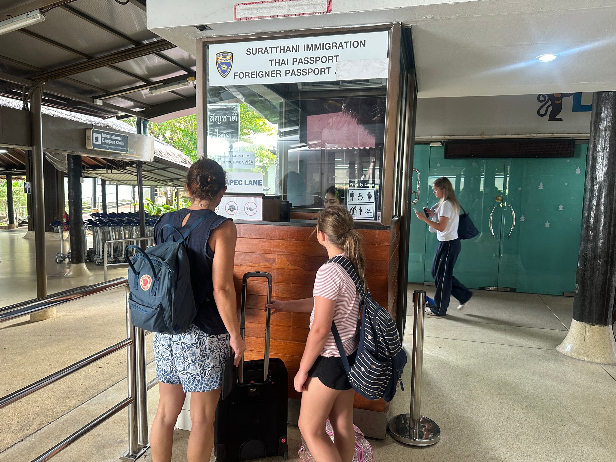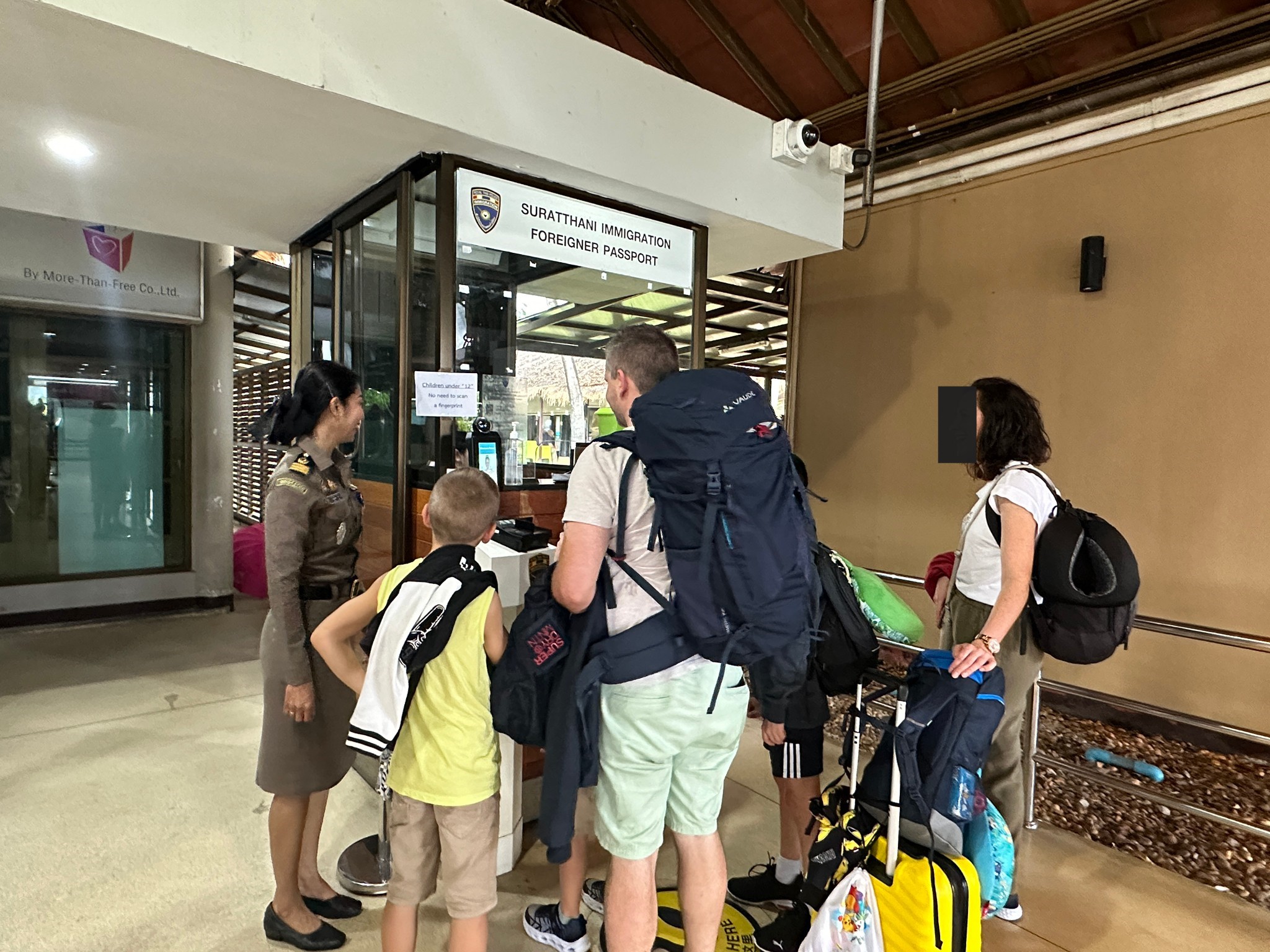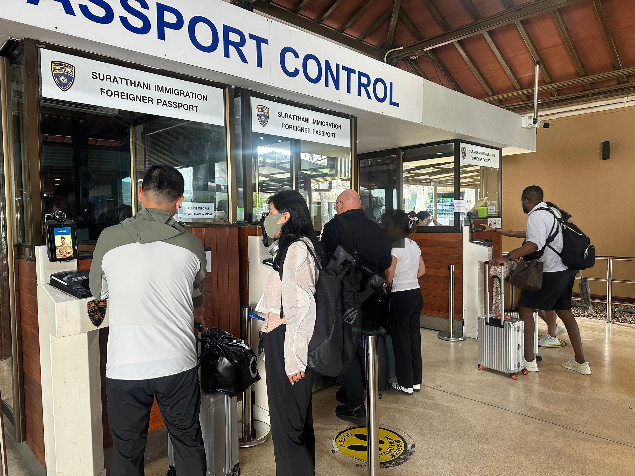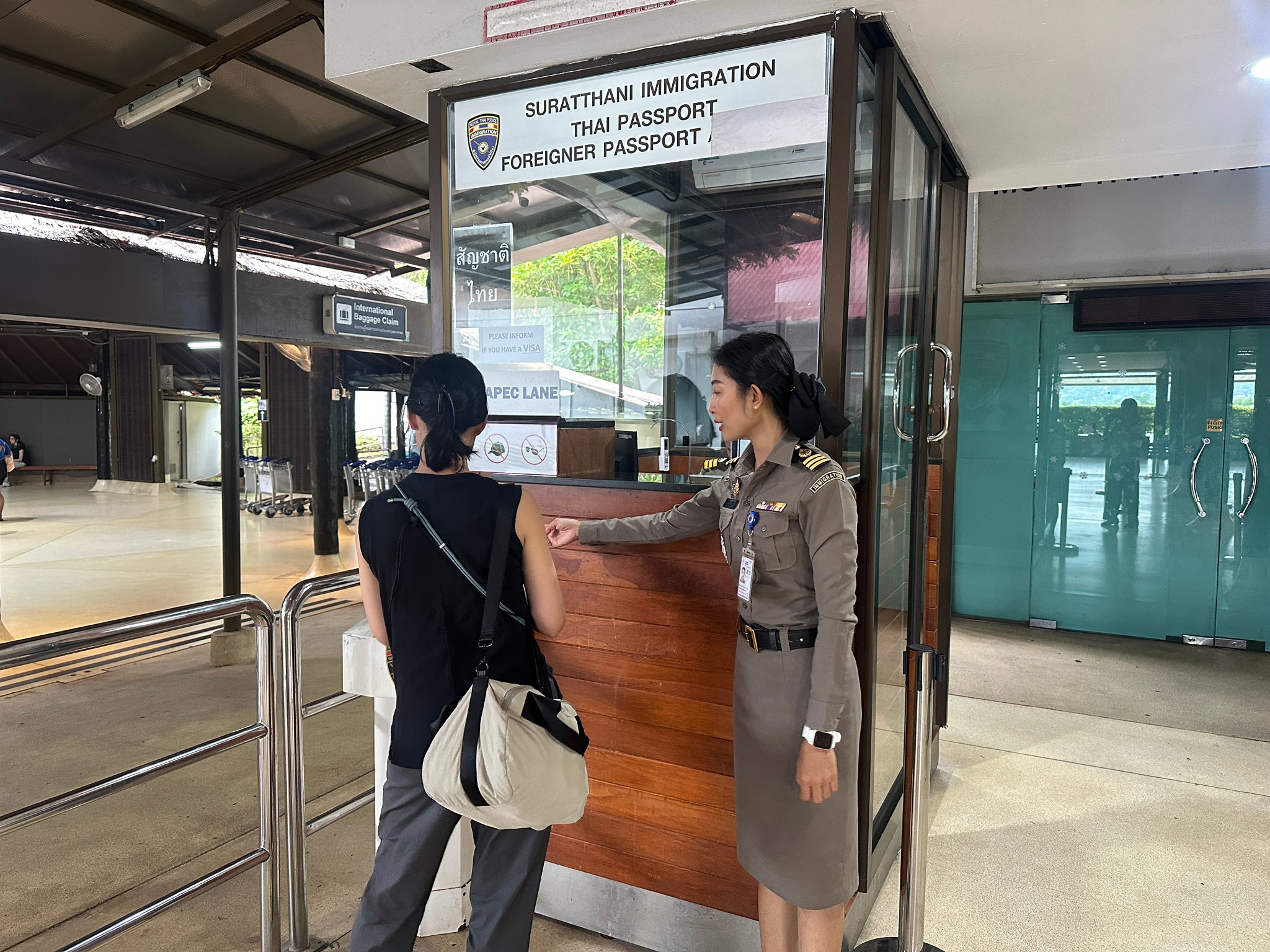 วันที่ 3 ต.ค.67 ร.ต.อ.ปิติพงษ์ เสนชู รอง สว.ตม.จว.สุราษฎร์ธานี ,ร.ต.อ.หญิง ภาวดี หวานทอง ,ร.ต.อ.หญิง จันทร์จิรา วิถี พร้อมด้วยเจ้าหน้าที่ ตม.จว.สุราษฎร์ธานี (ทอ.สมุย) ปฏิบัติหน้าที่ตรวจบุุคคลและพาหนะทางอากาศ ดูแลอำนวยความสะดวกและความเรียบร้อยในแถวระหว่างรอเข้าใช้บริการให้กับผู้โดยสารที่เดินทาง