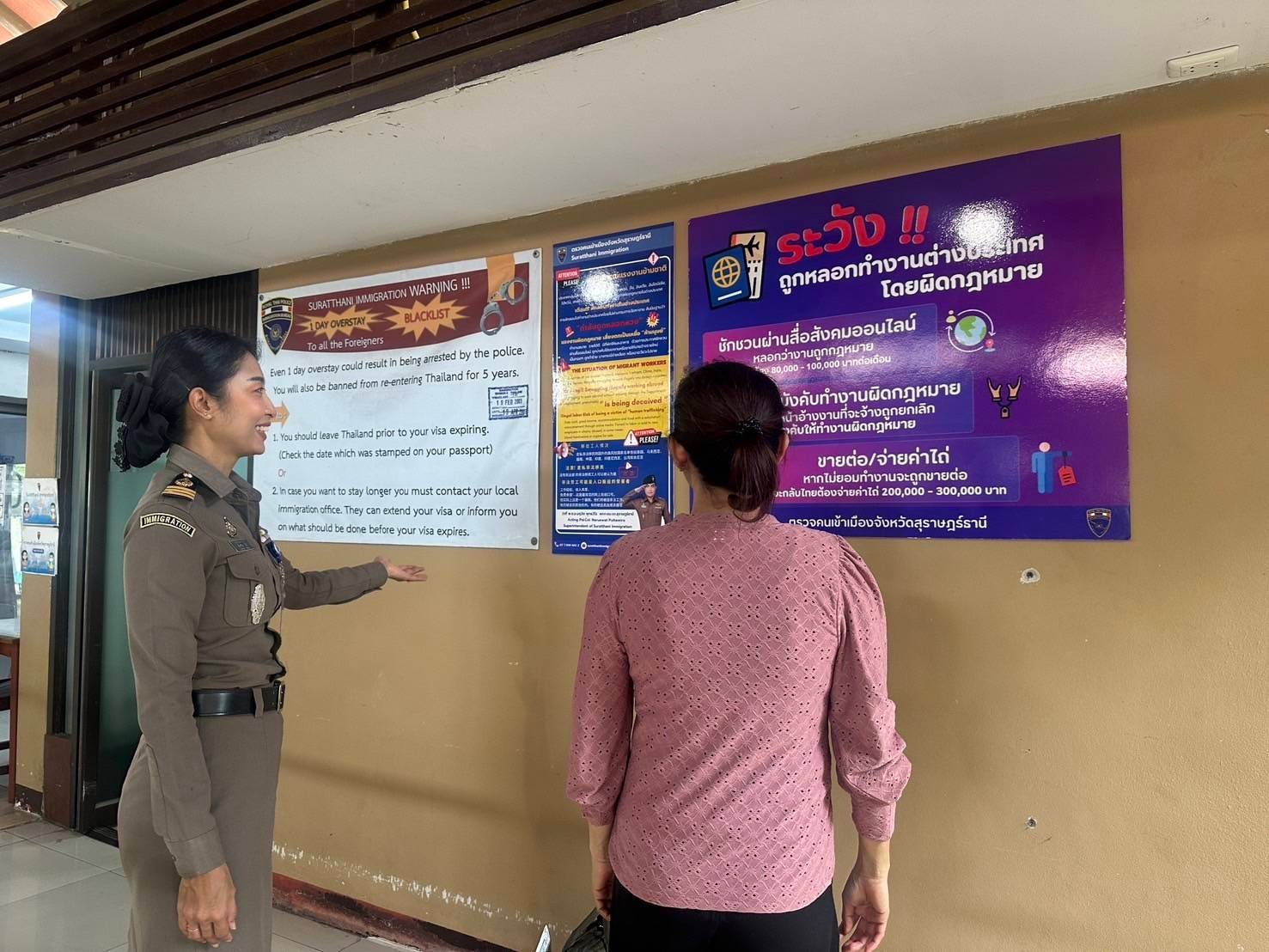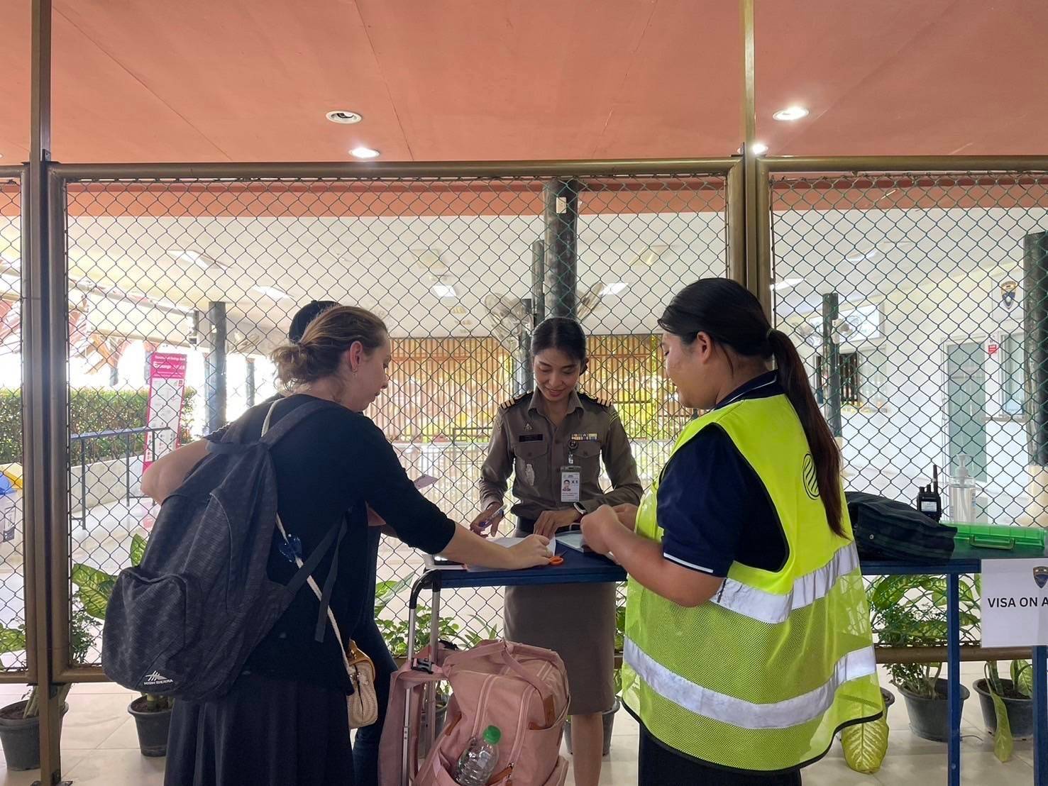 วันที่ 10 ต.ค.67 เวลา 09.30 น. ร.ต.อ.ปิติพงษ์ เสนชู รอง สว.ตม.จว.สุราษฎร์ธานี พร้อมด้วยเจ้าหน้าที่ตรวจบุคคลและพาหนะ (ทางอากาศ) ประชาสัมพันธ์ แนะนำและให้ข้อมูลที่เกี่ยวข้องต่างๆ กับผู้โดยสารที่เดินทางเข้า-ออกราชอาณาจักรทางอากาศ ในเขตพื้นที่รับผิดชอบประจำสนามบินสมุย