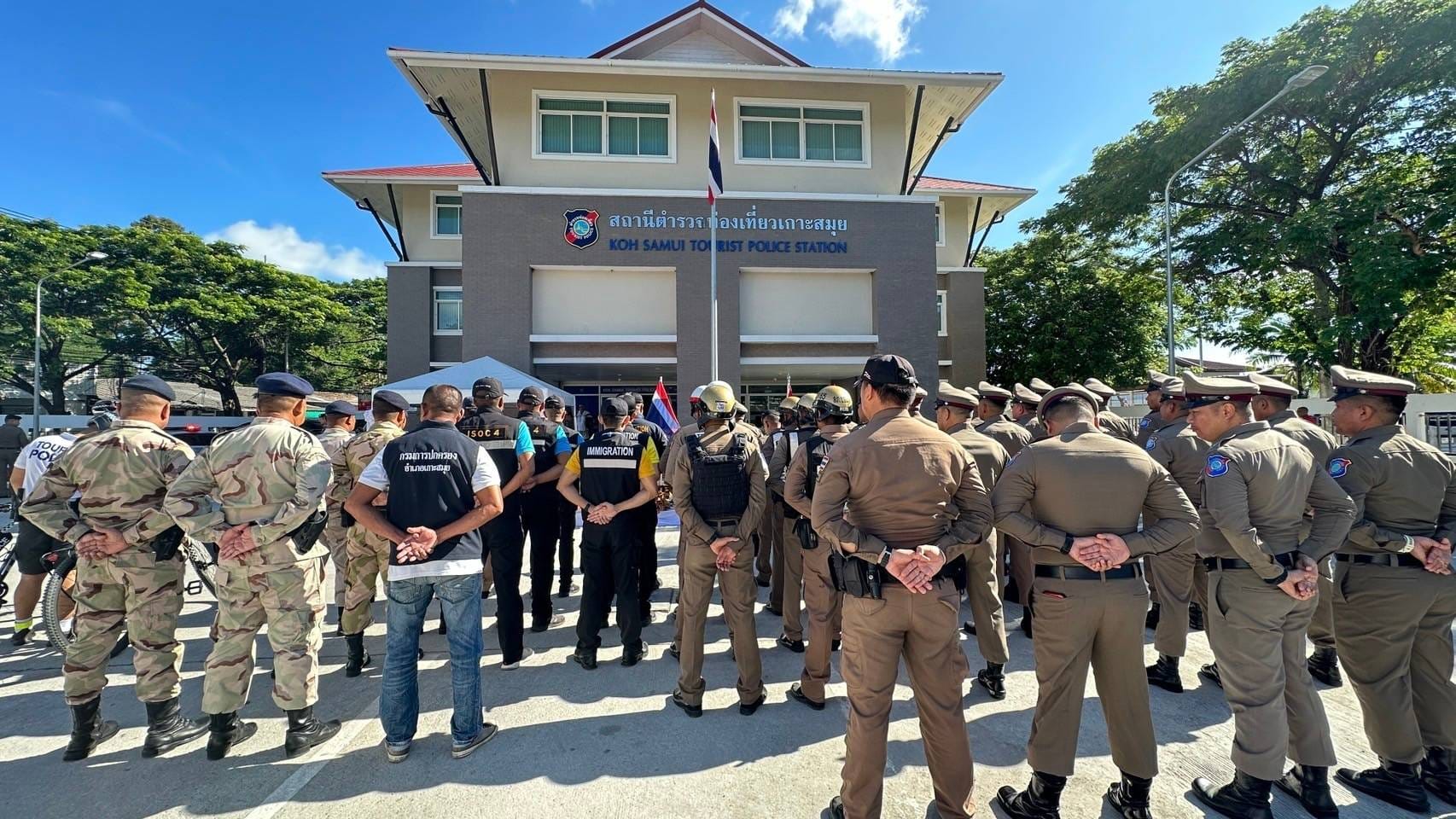 วันที่ 11 ส.ค.2567 เวลา 09.00 น. ร.ต.ท.ธรรมนูญ แพน้อย รอง สว.(ป.) ตม.จว.สุราษฎร์ธานี พร้อมเจ้าหน้าที่ชุดสืบสวน ชป.3 ได้นำรถยนต์ไฟฟ้าตรวจการณ์อัจฉริยะ (Smart Patrol Car:SPC) ออกสืบสวนหาข่าวในพื้นที่รับผิดชอบพร้อมบูรณาการร่วมเจ้าหน้าที่ตำรวจท่องเที่ยว ส.ทท.5 กก.2 บก.ทท.3 ,เจ้าหน้าที่ตำรวจภูธร สภ.บ่อผุด,เจ้าหน้าที่ทหาร ชุด กอ.รมน.ภาค 4 (พื้นที่อำเภอเกาะสมุย) ,เจ้าหน้าที่ฝ่ายปกครอง อำเภอเกาะสมุย, เจ้าหน้าที่ TAC,เจ้าหน้าที่อาสาตำรวจท่องเที่ยว อำเภอเกาะสมุย ร่วมปล่อยแถวระดมกวาดล้างอาชญากรรมฯ ณ หน้าที่ทำการ ส.ทท.5 กก.2 บก.ทท.3 (สถานีตำรวจท่องเที่ยวเกาะสมุย) ม.2 ต.บ่อผุด อ.เกาะสมุย จว.สุราษฎร์ธานี โดยมี พลตำรวจตรีพงษ์สยาม มีขันทอง รองผู้บัญชาการตำรวจท่องเที่ยว เป็นประธาน