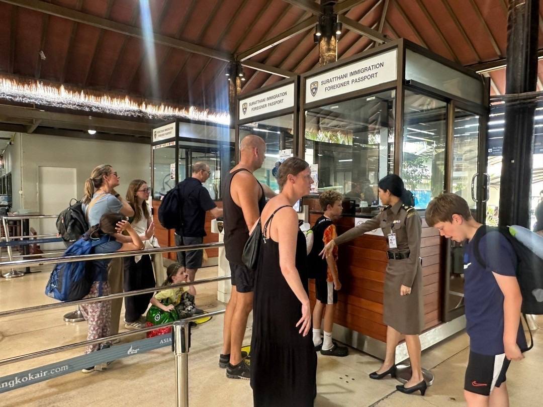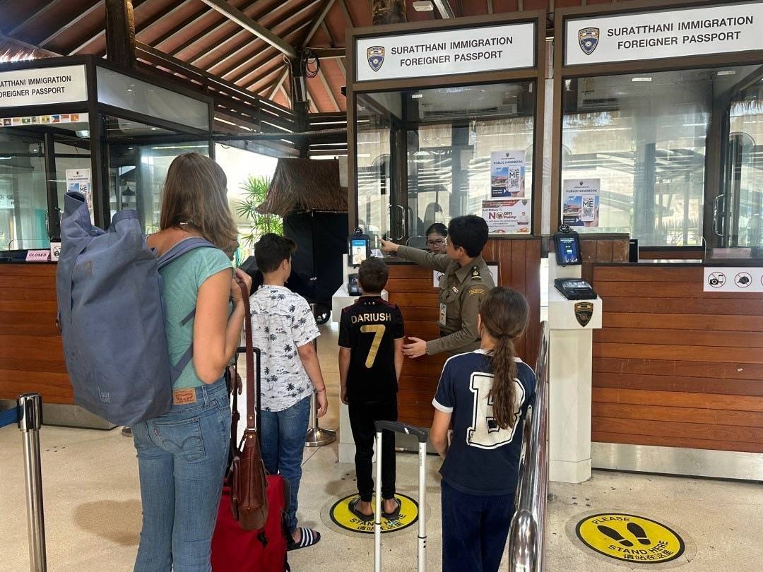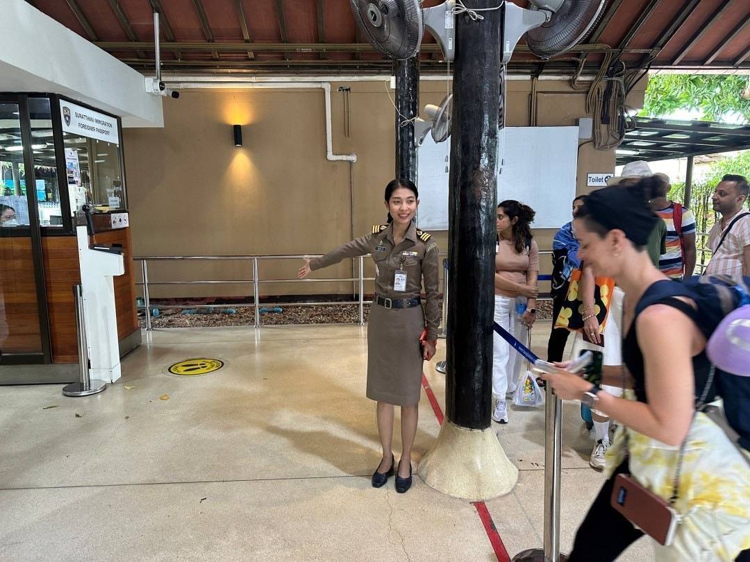 วันที่ 13 ต.ค.67 เวลา 13.00 น. ร.ต.อ.ปิติพงษ์ เสนชู รอง สว.ตม.จว.สุราษฎร์ธานี พร้อมด้วยเจ้าหน้าที่ตรวจบุคคลและพาหนะ (ทางอากาศ) อำนวยความสะดวกและดูแลความเรียบร้อยในแถวระหว่างรอเข้าใช้บริการในช่องตรวจและแนะนำการใช้บริการหน้าช่องตรวจให้กับผู้โดยสารที่เดินทางเข้า-ออก ทางอากาศในเขตพื้นที่รับผิดชอบประจำสนามบินสมุย