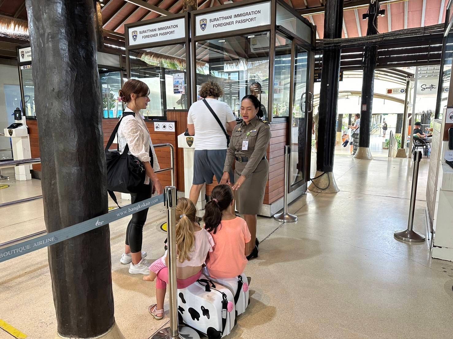 วันที่ 14 ต.ค.67 เวลา 11.30 น. ร.ต.อ.ปิติพงษ์ เสนชู รอง สว.ตม.จว.สุราษฎร์ธานี พร้อมด้วยเจ้าหน้าที่ตรวจบุคคลและพาหนะ (ทางอากาศ) ให้ความช่วยเหลือผู้โดยสารที่ต้องการความช่วยเหลือเป็นกรณีพิเศษสำหรับผู้โดยสารที่เดินทางเข้า-ออก ทางอากาศในเขตพื้นที่รับผิดชอบประจำสนามบินสมุย
