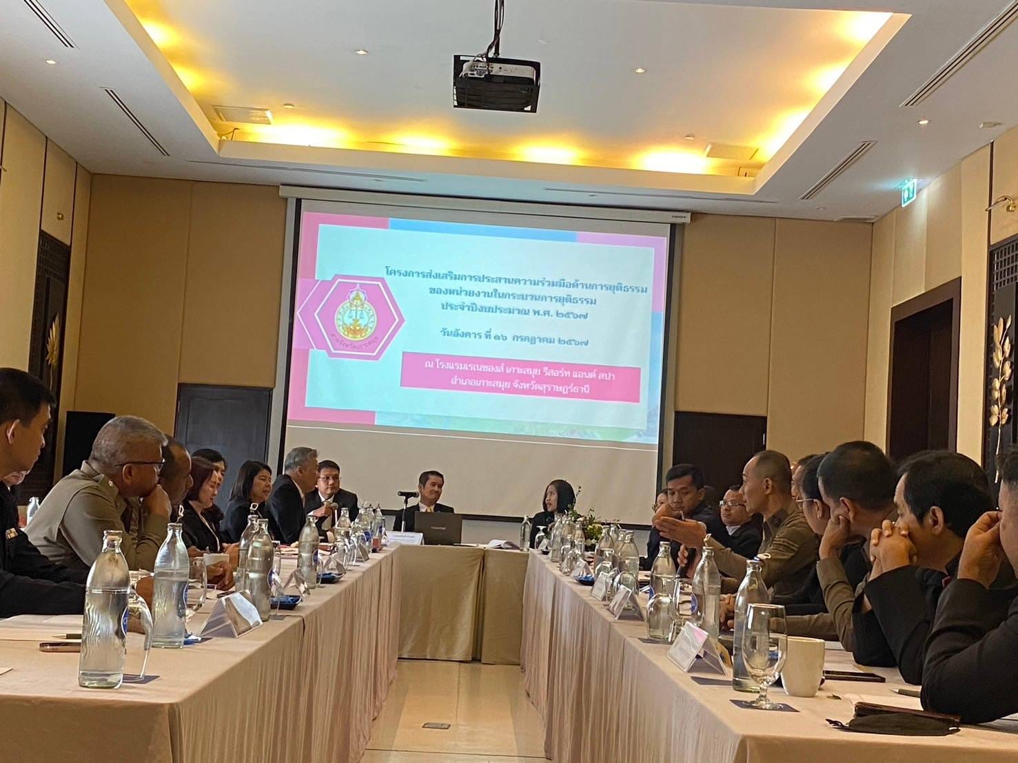 วันที่ 16 ก.ค.2567 เวลา 08.30 น. พ.ต.ท.วัสส์ธนภูมิ กุลจิตติชุติพร รอง ผกก.ตม.จว.สุราษฎร์ธานี และ ร.ต.อ.อรุณ มูสิกิ้ม รอง สว.ตม.จว. สุราษฎร์ธานี เข้วร่วมประชุมร่วมโครงการส่งเสริมการประสานความร่วมมือด้านงานยุติธรรม ของศาลจังหวัดเกาะสมุย ณ โรงแรม เรอเนสซอง ต.มะเร็ต อ.เกาะสมุย จว.สุราษฎร์ธานี