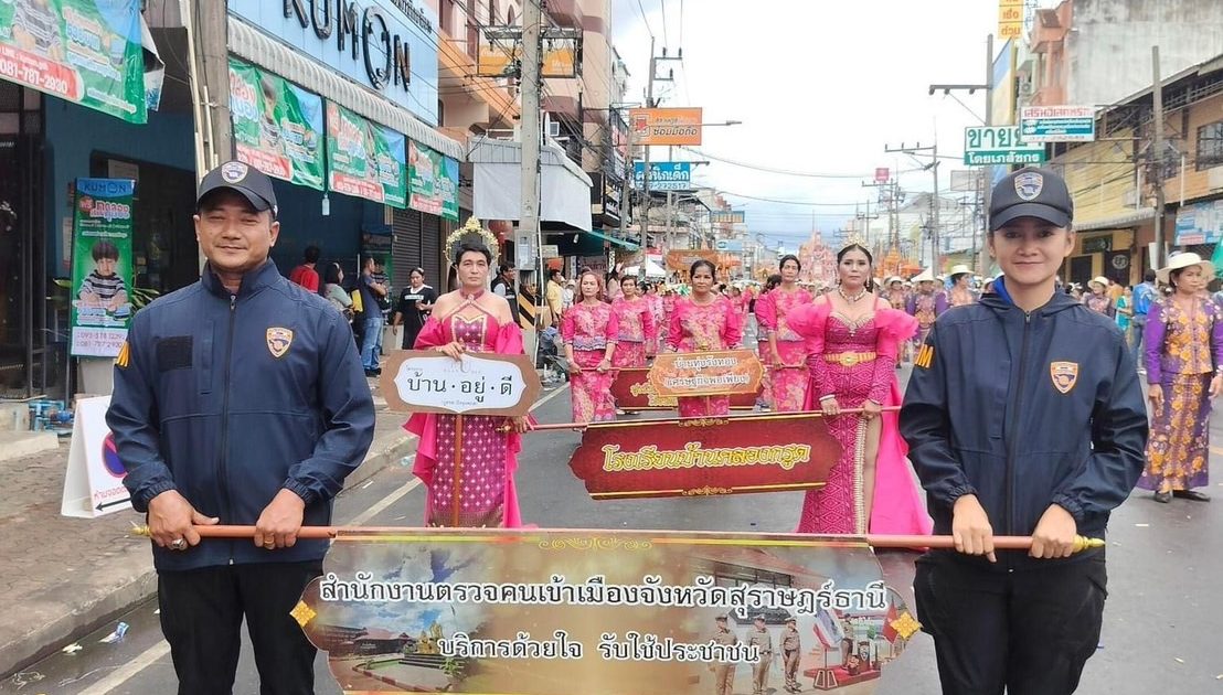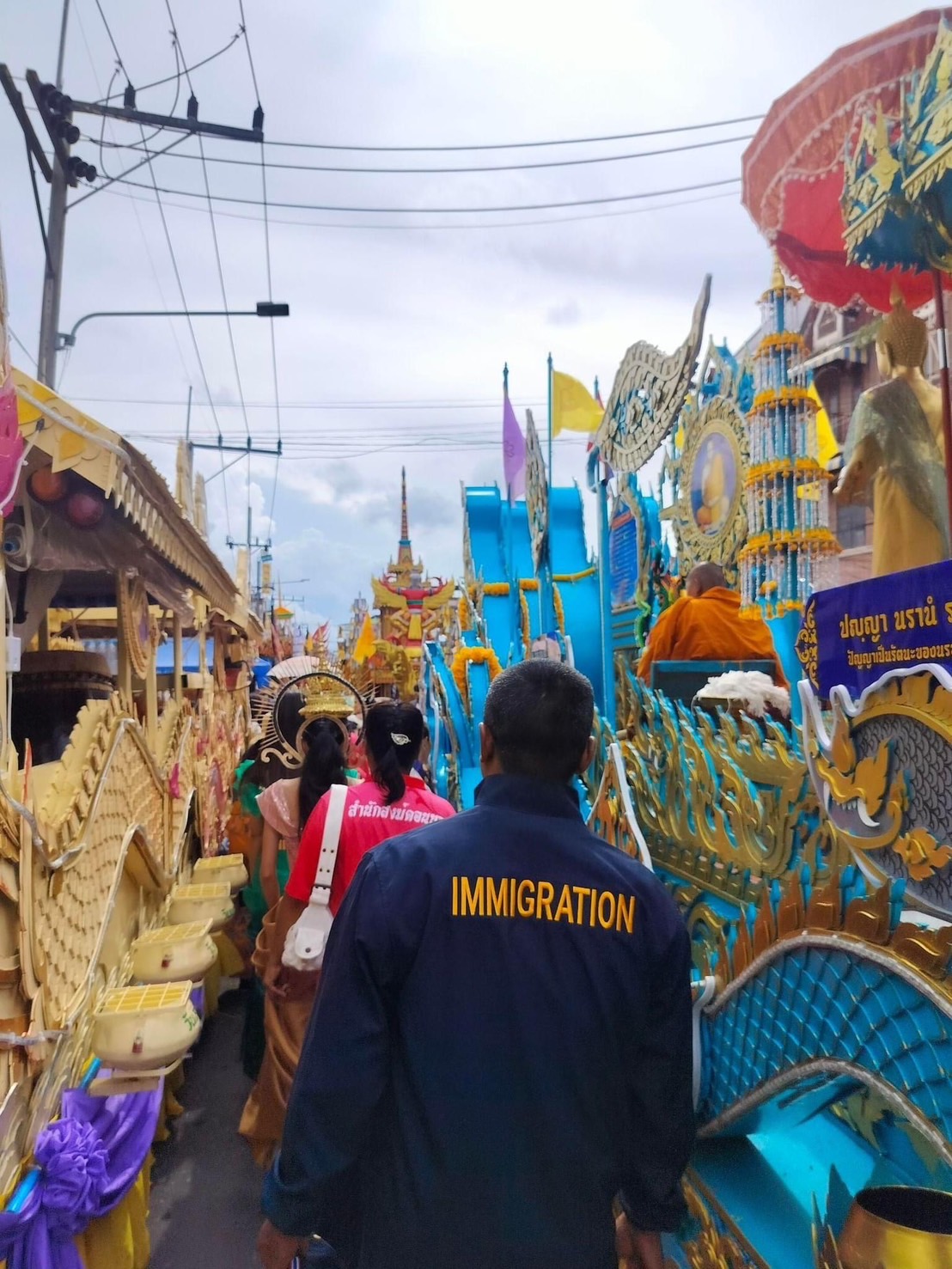 วันที่ 18 ต.ค.67 เวลา 16.30 น. ภายใต้การอำนวยการและสั่งการของ ว่าที่ พ.ต.อ.นฤวัต พุทธวิโร ผกก.ตม.จว.สุราษฎร์ธานี มอบหมายให้ ด.ต.ธเนศพล สำลี และ ด.ต.หญิง จันทรวดี พัฒนศักดิ์ ผบ.หมู่ ตม.จว.สุราษฎร์ธานี ร่วมกิจกรรม “งานประเพณีชักพระ ทอดผ้าป่า และแข่งเรือยาว จังหวัดสุราษฎร์ธานี” ประจำปี 2567 ทั้งนี้ มีวัตถุประสงค์เพื่อเป็นการอนุรักษ์และสืบสานประเพณีวัฒนธรรมอันดีงามของท้องถิ่นให้คงอยู่สืบไป โดยร่วมขบวนแห่เรือพนมพระทางบก ทั้งหมด 109 ลำ บริเวณหน้าศาลากลางจังหวัดสุราษฎร์ธานี-สะพานนริศ อ.เมือง จ.สุราษฎร์ธานี