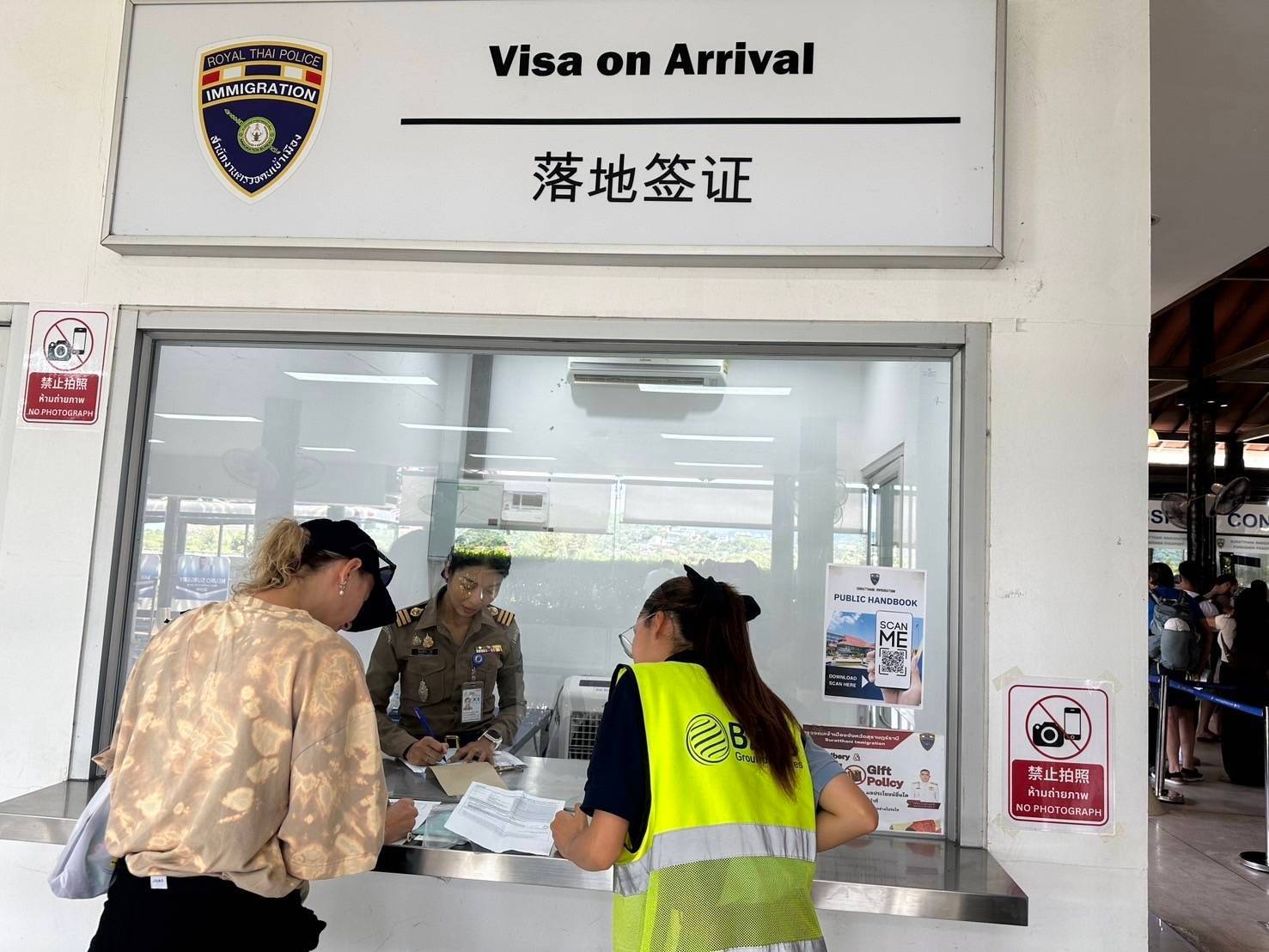 วันที่ 22 ต.ค.67 เวลา 18.15 น. ร.ต.อ.หญิง จันทร์จิรา วิถี รอง สว.ตม.จว.สุราษฎร์ธานี พร้อมด้วยเจ้าหน้าที่ตรวจบุคคลและพาหนะ (ทางอากาศ) ปฏิบัติหน้าที่อำนวยความสะดวกในการทำ VISA ON ARRIVAL ให้กับผู้โดยสารในเขตพื้นที่รับผิดชอบประจำสนามบินสมุย ตามระเบียบ กฎหมายที่เกี่ยวข้องอย่างเคร่งครัด ในเขตพื้นที่รับผิดชอบประจำสนามบินสมุย