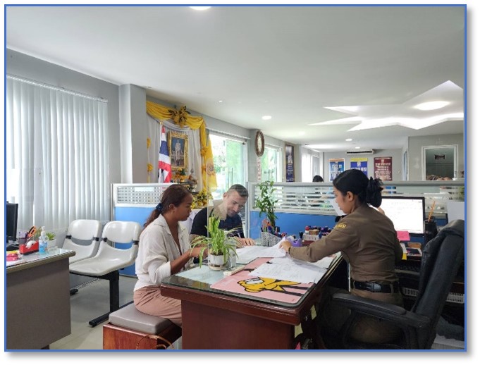 การแจ้งที่พักอาศัยฯ และแนะนำเอกสารประกอบคำร้องขอยู่ต่อฯ รวมถึงการแจ้งเบาะแสอาชญากรรมต่างๆ แก่คนต่างด้าวที่เข้ามารับบริการ