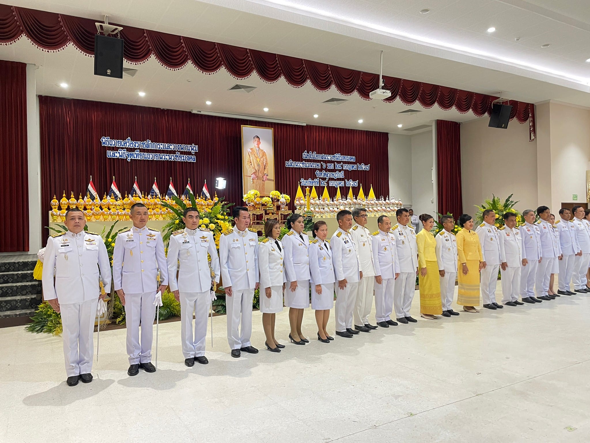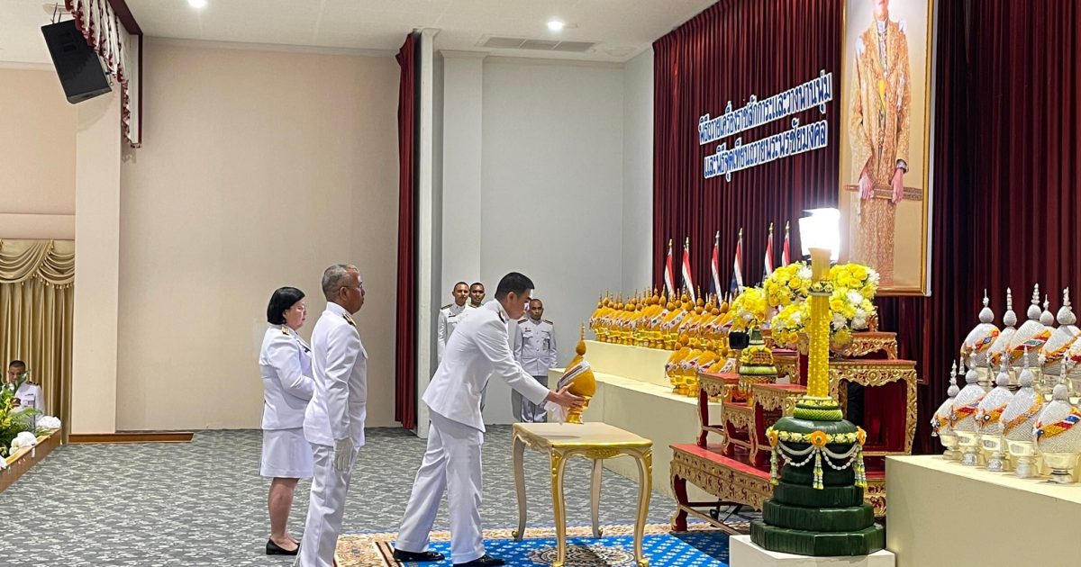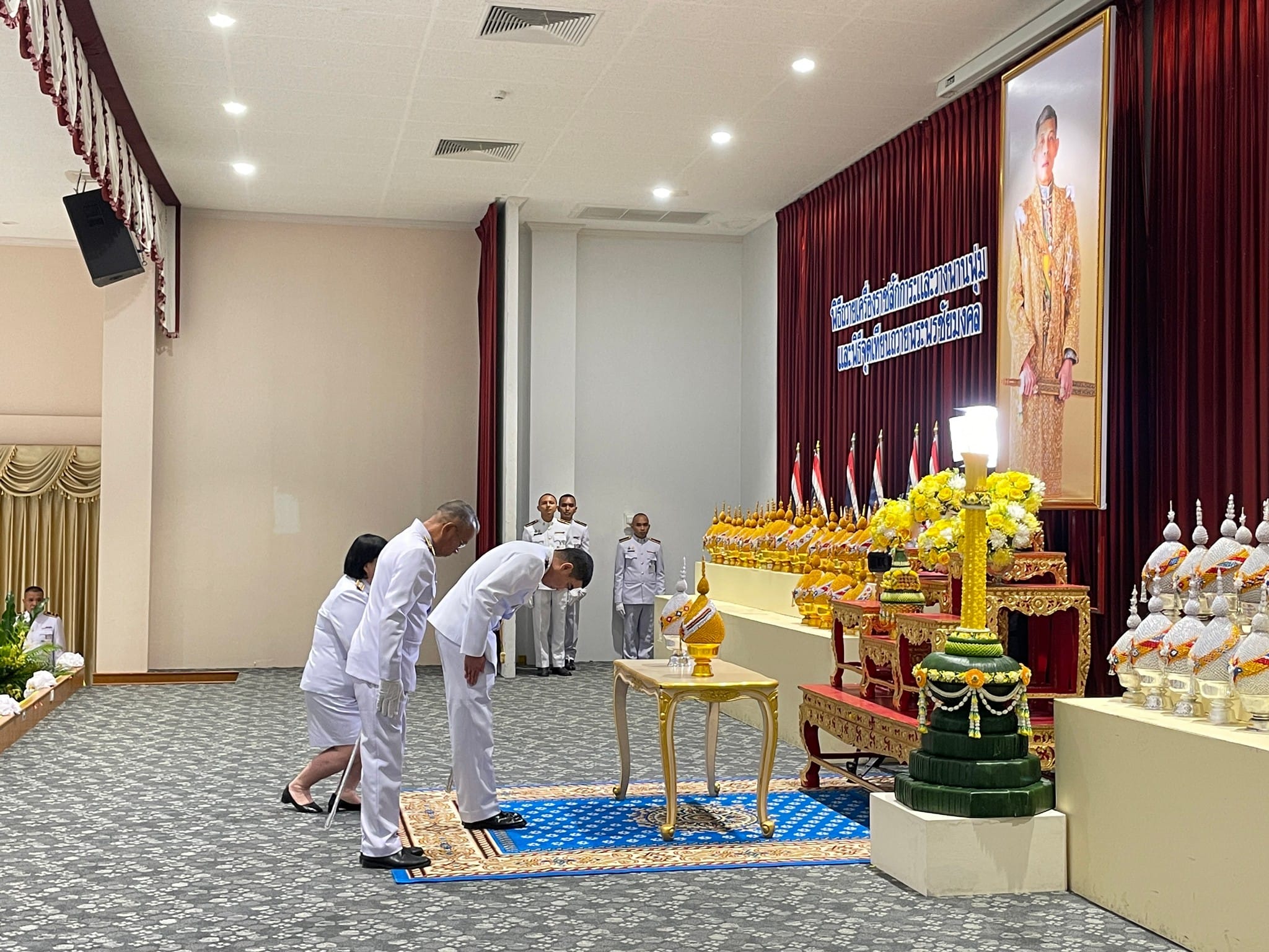 พ.ต.อ.นฤวัต พุทธวิโร ผกก.ตม.จว.สุราษฎร์ธานี พร้อมด้วย ร.ต.อ.หญิง ธมนวรรณ มณี รอง สว.ตม.จว.สุราษฎร์ธานี, ร.ต.ต.ผดุงศกดิ์ แยบกระโทก รอง สว.(อก.)ตม.จว.สุราษฎร์ธานี, ด.ต.พงษ์ศักดิ์ พัฒน์คง ผบ.หมู่ ตม.จว.สุราษฎร์ธานี และ จ.ส.ต.หญิง อัจฉรา จรัสสุนทรวงศ์ ผบ.หมู่ ตม.สุราษฎร์ธานี เข้าร่วมพิธีถวายเครื่องราชสักการะและวางพานพุ่ม และพิธีจุดเทียนถวายพระพร ชัยมงคล เนื่องในโอกาสพระราชพิธีมหามงคล เฉลิมพระชนมพรรษา 6 รอบ 28 กรกฎาคม 2567 ณ อาคารศูนย์กลางการประชุมสัมมนาภาคใต้ตอนบน ศาลากลางจังหวัดสุราษฎร์ธานี โดยมี นายเจษฎา จิตรัตน์ ผู้ว่าราชการจังหวัดสุราษฎร์ธานี เป็นประธานในพิธี