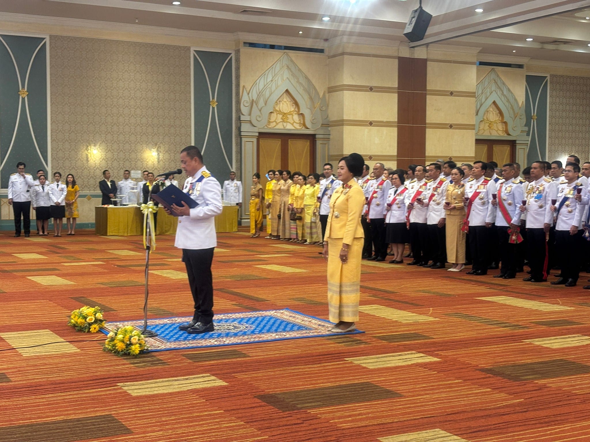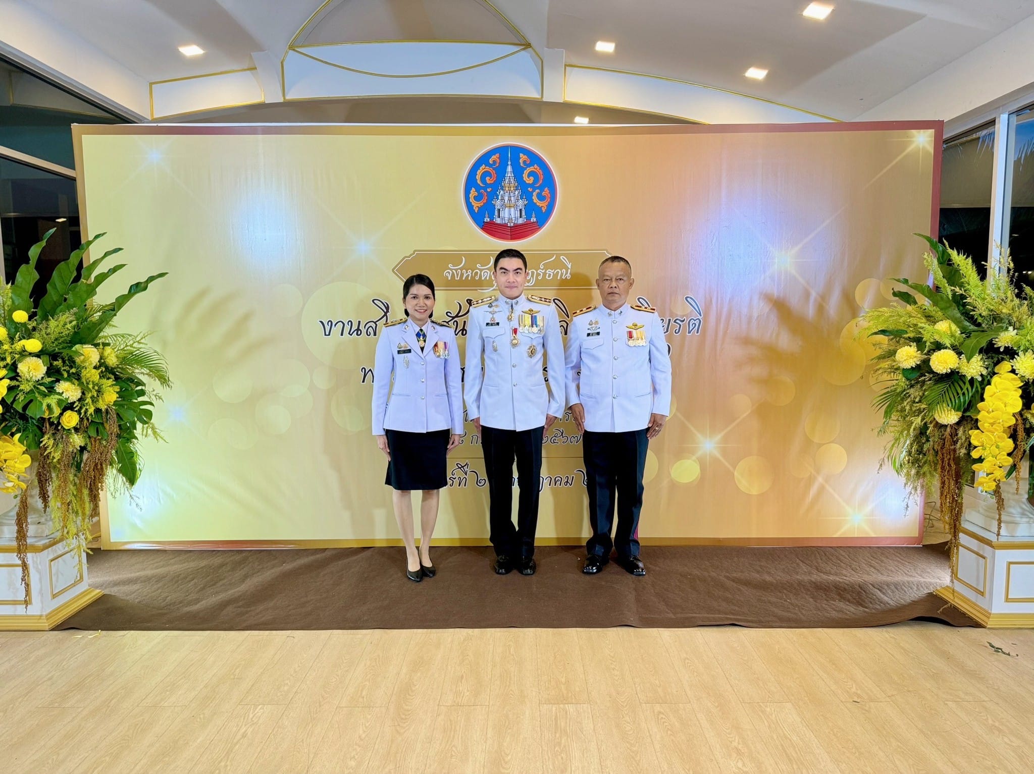 ว่าที่ พ.ต.อ.นฤวัต พุทธวิโร ผกก.ตม.จว.สุราษฎร์ธานี พร้อมด้วย ร.ต.อ.หญิง ขวัญนภา คงจันทร์ รอง สว.ตม.จว.สุราษฎร์ธานี, ร.ต.ท.พิทัก ฤทธิรักษา รอง สว.(สส.)ตม.จว.สุราษฎร์ธานี และ ส.ต.ท.ชาญวิทย์ ศรีอาภานนท์ ผบ.หมู่ฯ ปฏิบัติราชการ ตม.จว.สุราษฎร์ธานี เข้าร่วมงานสโมสรสันนิบาตเฉลิมพระเกียรติพระบาทสมเด็จพระเจ้าอยู่หัว เนื่องในโอกาสพระราชพิธีมหามงคล เฉลิมพระชนมพรรษา 6 รอบ 28 กรกฎาคม 2567 ณ ห้องศรีวิชัย ชั้น 2 รร.วังใต้ อ.เมือง จ.สุราษฎร์ธานี โดยมี นายเจษฎา จิตรัตน์ ผู้ว่าราชการจังหวัดสุราษฎร์ธานี เป็นประธานในพิธี