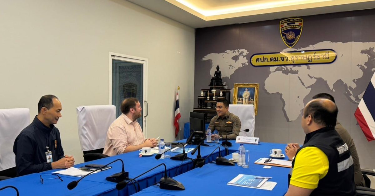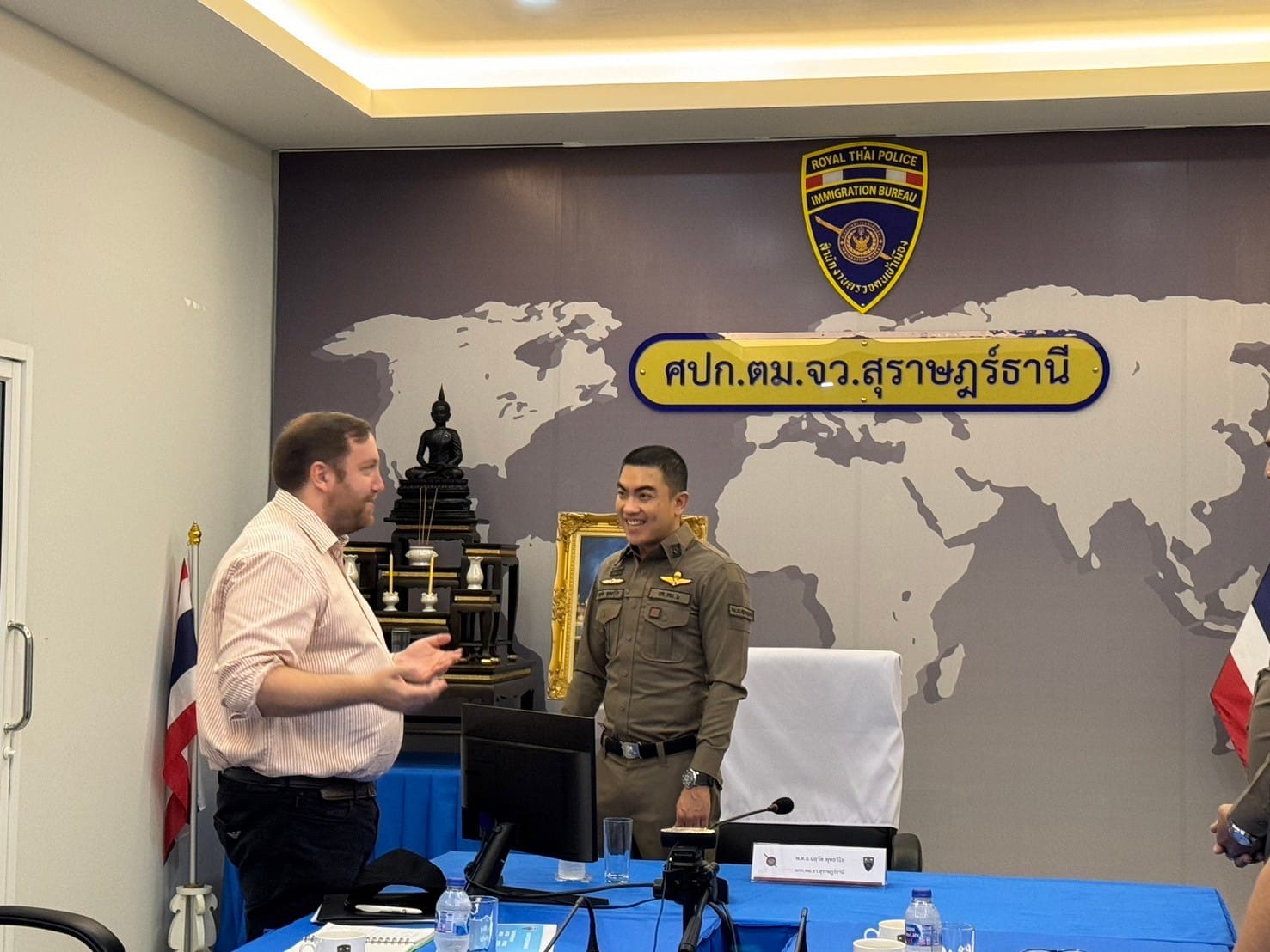วันที่ 30 ส.ค. 67 เวลา 9.30 น. นายโยสท์ เดอปั๊ปเพอะ (Mr.Joost Depaepe) กงสุล สถานเอกอัครราชทูตเบลเยียมประจำประเทศไทย ได้มาเยือน ตม.จว.สุราษฎร์ธานี (สมุย) โดยมี ว่าที่ พ.ต.อ.นฤวัต พุทธวิโร ผกก.ตม.จว.สุราษฎร์ธานี, พ.ต.ท.วัสส์ธนภูมิ กุลจิตติชุติพร รอง ผกก.ตม.จว.สุราษฎร์ธานี และ ร.ต.อ.อรุณ มูสิกิ้ม รอง สว.ตม.จว.สุราษฎร์ธานี ให้การต้อนรับและได้ประชุมหารือ แลกเปลี่ยน รับทราบข้อมูลทั่วไป และขอความร่วมมือในการช่วยเหลือชาวเบลเยียมในประเทศไทย ณ ห้องประชุม ศปก.ตม.จว.สุราษฎร์ธานี (สมุย)