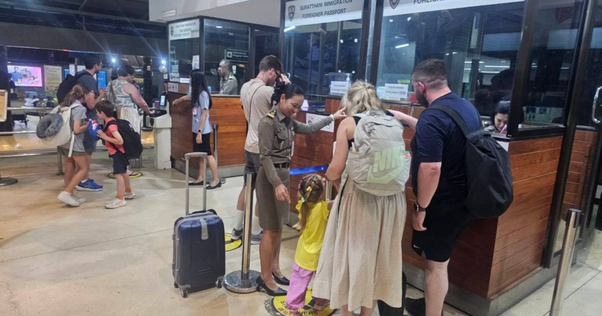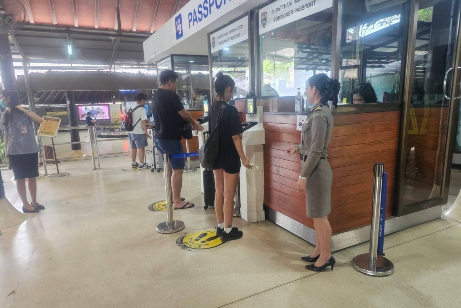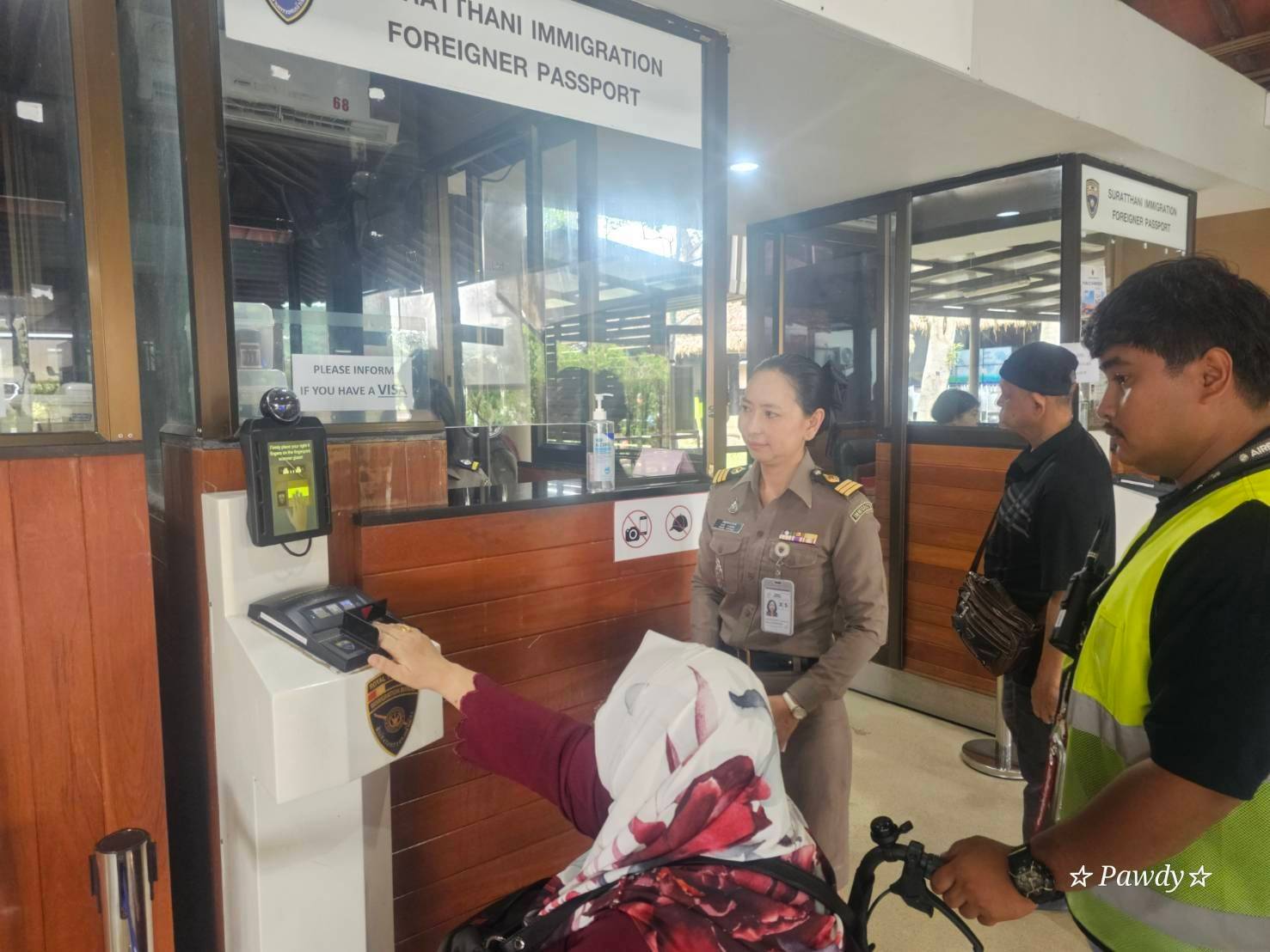 วันที่ 5 ต.ค.67 เวลา 17.10 น. ร.ต.อ.หญิง ภาวดี หวานทอง รอง สว.ตม.จว.สุราษฎร์ธานี พร้อมด้วยเจ้าหน้าที่ตรวจบุคคลและพาหนะ (ทางอากาศ) อำนวยความสะดวกและดูแลความเรียบร้อยในแถวระหว่างรอเข้าใช้บริการในช่องตรวจและแนะนำการใช้บริการหน้าช่องตรวจให้กับผู้โดยสารที่เดินทางเข้า-ออก ทางอากาศในเขตพื้นที่รับผิดชอบประจำสนามบินสมุย