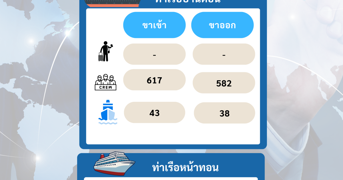 สถิติบุคคลและพาหนะเดินทางเข้า – ออกราชอาณาจักร (ทางน้ำ) ประจำเดือน มกราคม 2568