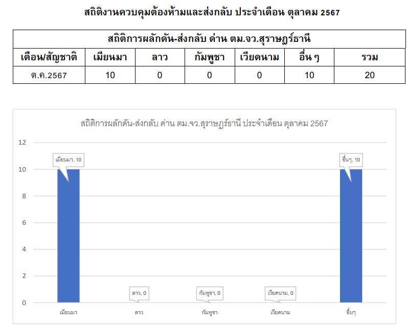 สถิติผลการจับกุม และ สถิติงานควบคุมต้องห้ามและส่งกลับ 31 ต.ค.67