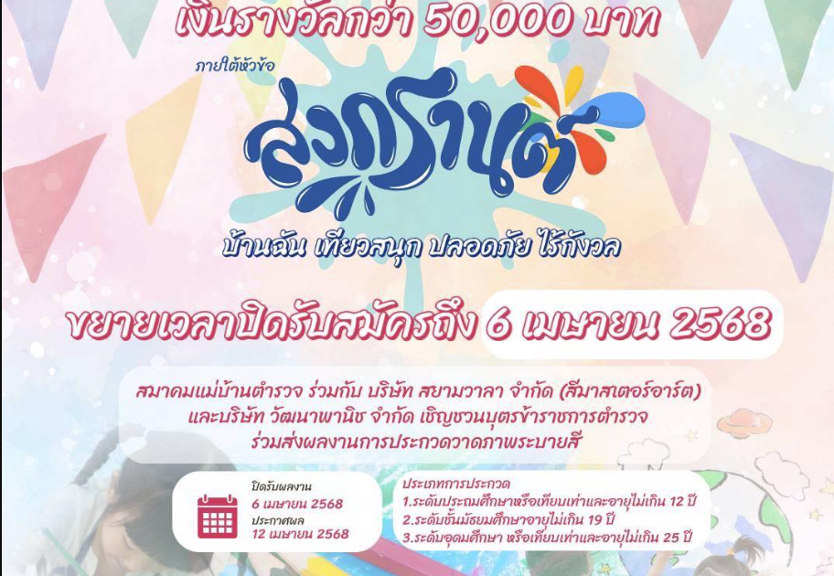 …สมาคมแม่บ้านตำรวจชวนบุตรข้าราชการตำรวจประกวดวาดภาพระบายสี “สงกรานต์ บ้านฉัน เที่ยวสนุก ปลอดภัย ไร้กังวล”