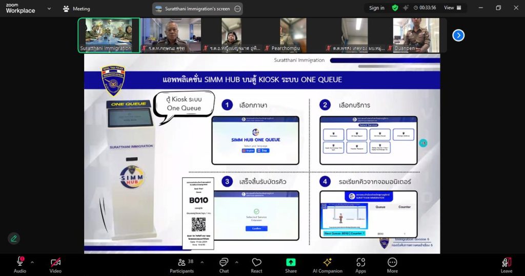 ทั้งจองล่วงหน้าและคิว Walk-in เชื่อมโยงทุกจุดบริการ ในระบบฐานข้อมูลเดียวกัน โดยมีการใช้บริการผ่านแอปพลิเคชั่น SIMM HUB และบนตู้ KIOSK (วางไว้ตามจุดบริการต่างๆ รวมจำนวน 4 ตู้ )