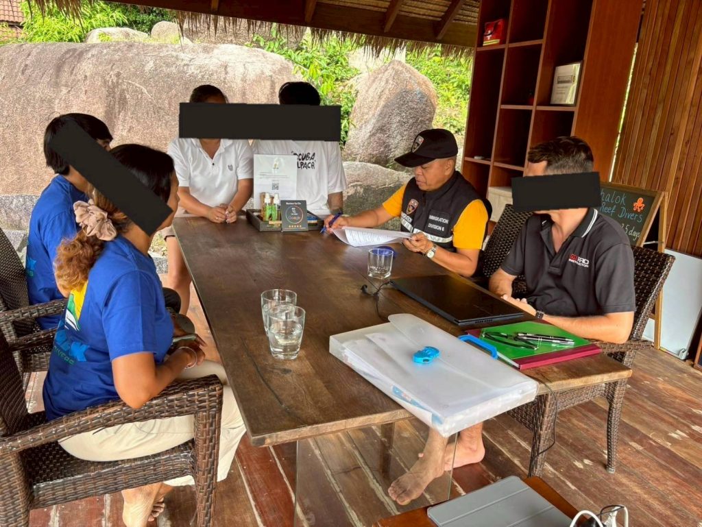 วันที่ 20 มี.ค.68 เวลา 15.30 น. ร.ต.ต.อรุณ พรหมทอง รอง สว.(อก.)ตม.สุราษฎร์ธานี พร้อมเจ้าหน้าที่ชุดสืบสวนฯ ชป.5 (เกาะเต่า)ได้ออกตรวจสอบข้อเท็จจริงกรณีคนต่างด้าวซึ่งได้ยื่นคำร้องขออยู่ต่อในราชอาณาจักรเป็นการชั่วคราว 1 ราย สัญชาติ เยอรมัน โดยอ้างเหตุ เพื่อการขออยู่ต่อในราชอาณาจักรเป็นการชั่วคราว ประเภทธุรกิจ บจก.โฉลก รีบ ไดเวอร์ส 11/50 ม.3 ต.เกาะเต่า อ.เกาะพะงัน จว.สุราษฎร์ธานี เจ้าหน้าที่ชุดสืบสวน ชป.5 (เกาะเต่า) ได้ตรวจสอบแล้วพบบุคคลต่างด้าวและสถานที่ทำงานตรงตามเอกสารที่ได้ยื่นคำร้องไว้