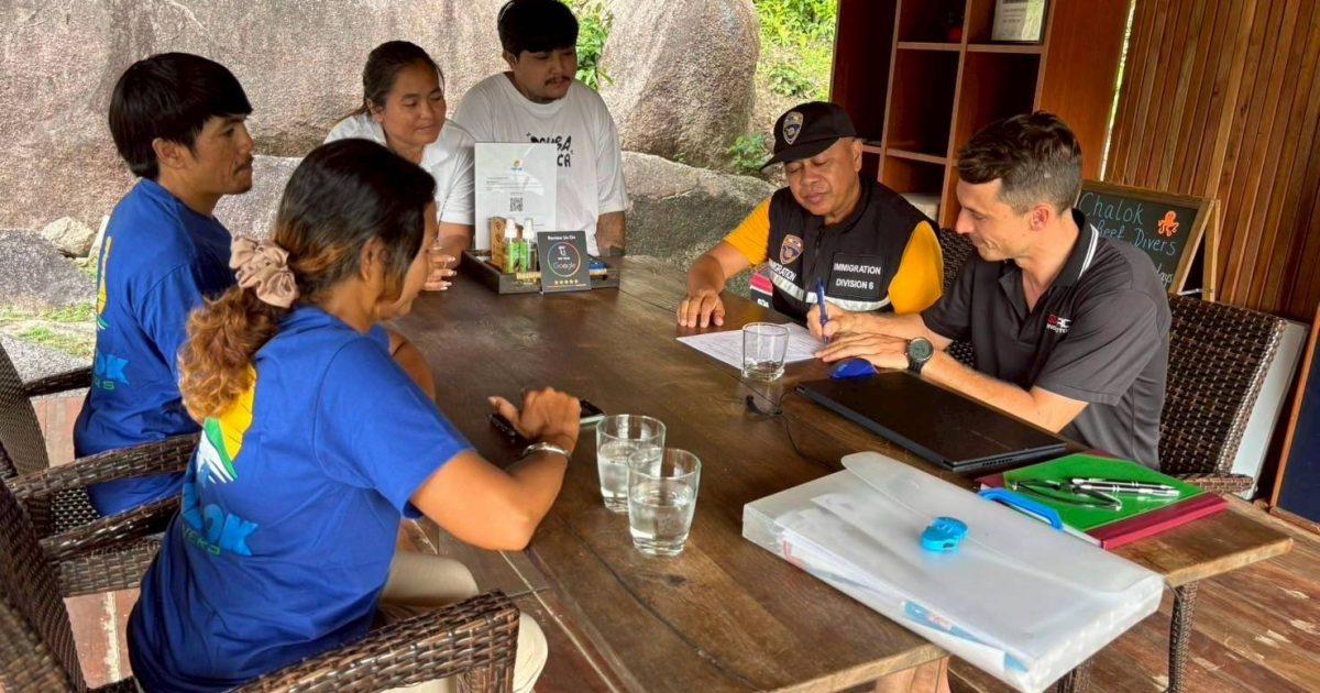 วันที่ 20 มี.ค.68 เวลา 15.30 น. ร.ต.ต.อรุณ พรหมทอง รอง สว.(อก.)ตม.สุราษฎร์ธานี พร้อมเจ้าหน้าที่ชุดสืบสวนฯ ชป.5 (เกาะเต่า)ได้ออกตรวจสอบข้อเท็จจริงกรณีคนต่างด้าวซึ่งได้ยื่นคำร้องขออยู่ต่อในราชอาณาจักรเป็นการชั่วคราว 1 ราย สัญชาติ เยอรมัน โดยอ้างเหตุ เพื่อการขออยู่ต่อในราชอาณาจักรเป็นการชั่วคราว ประเภทธุรกิจ บจก.โฉลก รีบ ไดเวอร์ส 11/50 ม.3 ต.เกาะเต่า อ.เกาะพะงัน จว.สุราษฎร์ธานี เจ้าหน้าที่ชุดสืบสวน ชป.5 (เกาะเต่า) ได้ตรวจสอบแล้วพบบุคคลต่างด้าวและสถานที่ทำงานตรงตามเอกสารที่ได้ยื่นคำร้องไว้