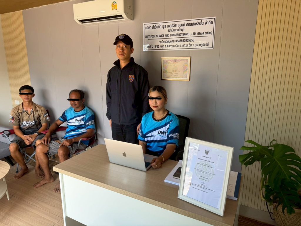 สัญชาติ ฟิลิปปินส์ โดยอ้างเหตุผลเพื่อ ธุรกิจปี 1 บจก. ดีเอ็นทีที พูล เซอร์วิส แอนด์ คอนสตรัคชั่น จำกัด บริเวณ ม. 1 ต.เกาะพะงัน อ.เกาะพะงัน จว.สุราษฎร์ธานี เจ้าหน้าที่ชุดสืบสวน ชป.4 (พะงัน) ได้ตรวจสอบแล้วพบบุคคลต่างด้าวและสถานที่ตรงตามเอกสารที่ได้ยื่นคำร้องไว้