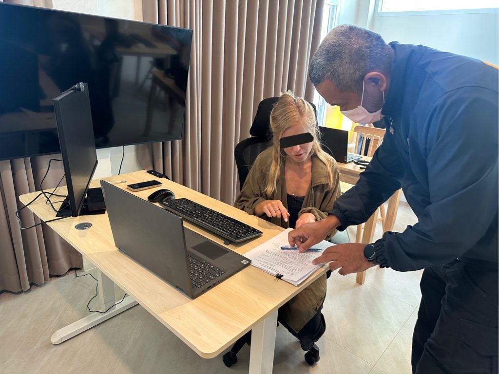 หญิง สัญชาติ อิสราเอล พื้นที่ ม.1 ต.เกาะพะงัน อ.เกาะพะงัน จว.สุราษฎร์ธานี เจ้าหน้าที่ชุดสืบสวน ชป.4 (พะงัน) ได้ตรวจสอบแล้วพบบุคคลต่างด้าวตรงตามเอกสารที่ได้ยื่นคำร้องไว้