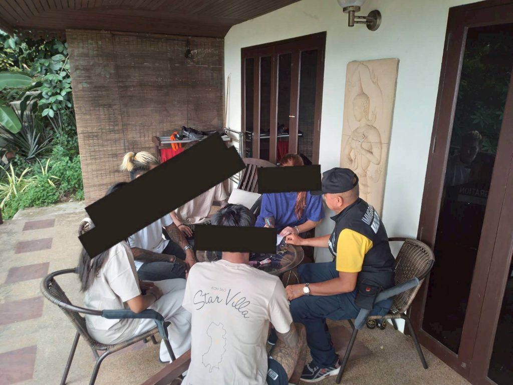 โดยอ้างเหตุผลเพื่อธุรกิจ ปี 1 บจก.ดาวสมุย จำกัด เลขที่ 11/20 ม.1 ต.เกาะเต่า อ.เกาะพะงัน จว.สุราษฎร์ธานี เจ้าหน้าที่ชุดสืบสวน ชป.5 (เกาะเต่า) ได้ตรวจสอบแล้วพบบุคคลต่างด้าวและสถานที่ทำงานตรงตามเอกสารที่ได้ยื่นคำร้องไว้