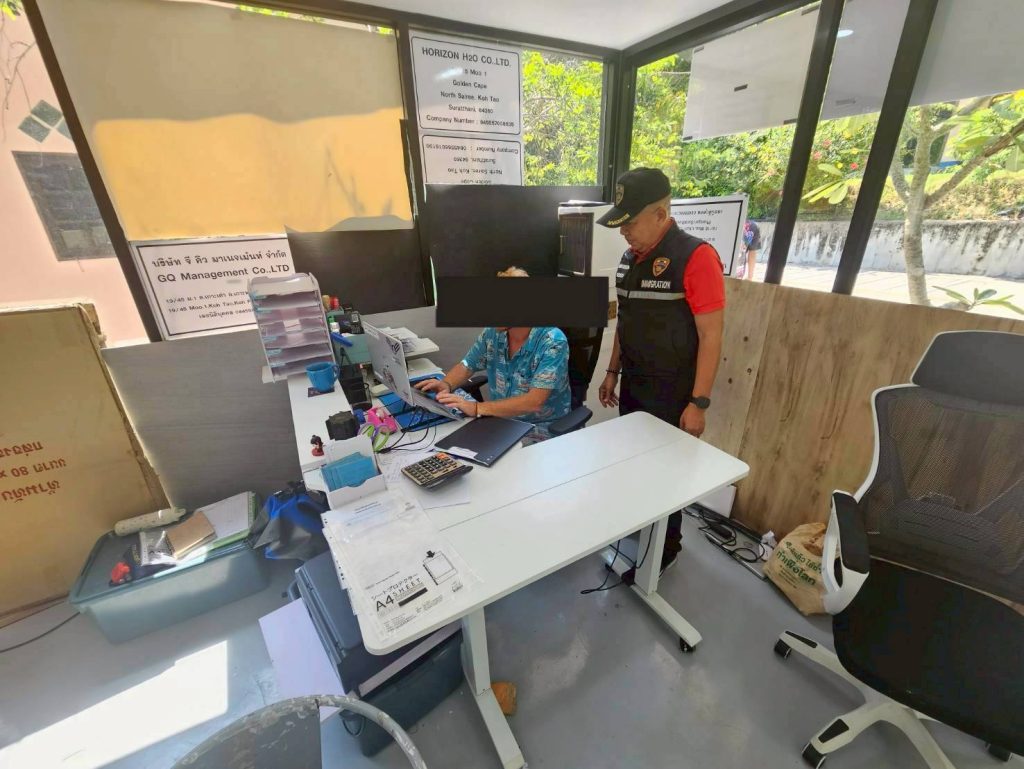 โดยอ้างเหตุผลเพื่อธุรกิจ ปี 1 บจก.จี คิว มาเนจเมนท์ เลขที่ 19/45 ม.1 ต.เกาะเต่า อ.เกาะพะงัน จว.สุราษฎร์ธานี เจ้าหน้าที่ชุดสืบสวน ชป.5 (เกาะเต่า) ได้ตรวจสอบแล้วพบบุคคลต่างด้าวและสถานที่ทำงานตรงตามเอกสารที่ได้ยื่นคำร้องไว้