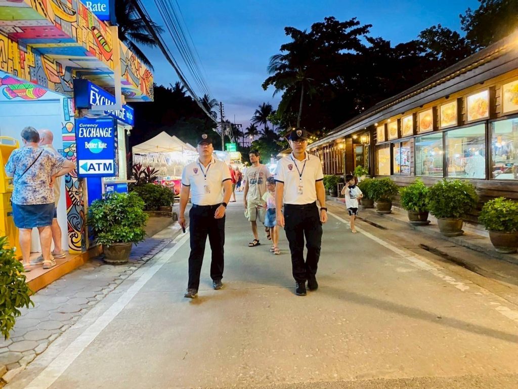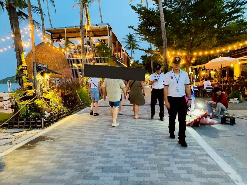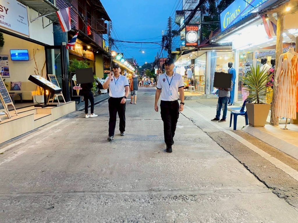 ด.ต.ชินศักดิ์ ชิ่นฝั่น ผบ.หมู่ ตม.จว.สุราษฎร์ธานี พร้อมด้วย นาย หลิม ยู่ ซิ่น (MR.LIM YU SIN) สัญชาติ มาเลเซีย อส.ตม. ออกเดินเท้าตรวจตราดูแลความปลอดภัยแก่นักท่องเที่ยวและผู้ประกอบการ ตามคำสั่ง ตม.จว.สุราษฎร์ธานี ที่ 133/2567 ลง วันที่ 24 ธ.ค. 2567 เรื่องสายตรวจเดินเท้าร่วมบูรณาการเพื่อชุมชนปลอดภัย ห้วง 1-31 ม.ค. 2568 ตั้งแต่เวลา 18.00-20.30 น. ณ ชุมชนฟิชเชอร์แมน วิลเลจ ม.1 ต.บ่อผุด อ.เกาะสมุย จ.สุราษฎร์ธานี