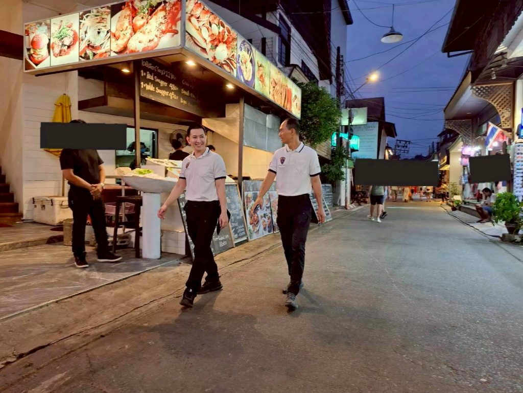 ออกเดินเท้าตรวจตราดูแลความปลอดภัยแก่นักท่องเที่ยวและผู้ประกอบการ ตามคำสั่ง ตม.จว.สุราษฎร์ธานี ที่ 35/2568 ลงวันที่ 1 พ.ค.2568 เรื่องสายตรวจเดินเท้าร่วมบูรณาการเพื่อชุมชนปลอดภัย ห้วง 1-31 พ.ค.2568 ตั้งแต่เวลา 18.00 น. – 20.30 น.