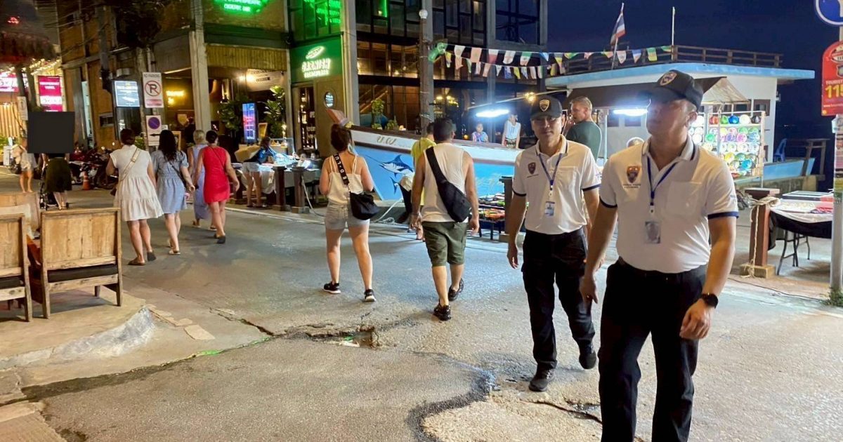 ด.ต.ชินศักดิ์ ชิ่นฝั่น ผบ.หมู่ ตม.จว.สุราษฎร์ธานี พร้อมด้วย นาย หลิม ยู่ ซิ่น (MR.LIM YU SIN) สัญชาติ มาเลเซีย อส.ตม. ออกเดินเท้าตรวจตราดูแลความปลอดภัยแก่นักท่องเที่ยวและผู้ประกอบการ ตามคำสั่ง ตม.จว.สุราษฎร์ธานี ที่ 133/2567 ลง วันที่ 24 ธ.ค. 2567 เรื่องสายตรวจเดินเท้าร่วมบูรณาการเพื่อชุมชนปลอดภัย ห้วง 1-31 ม.ค. 2568 ตั้งแต่เวลา 18.00-20.30 น. ณ ชุมชนฟิชเชอร์แมน วิลเลจ ม.1 ต.บ่อผุด อ.เกาะสมุย จ.สุราษฎร์ธานี