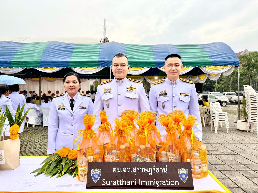 วันที่ 5 ธ.ค. 67 เวลา 07.00 น. พ.ต.ท.พิงคะรัตน์ ซ้ายขวัญ รอง ผกก.ตม.จว.สุราษฎร์ธานี พร้อมด้วยข้าราชการตำรวจในสังกัดฯ เข้าร่วมพิธีทำบุญตักบาตรถวายพระราชกุศล เนื่องในวันคล้ายวันพระบรมราชสมภพ พระบาทสมเด็จพระบรมชนกาธิเบศร มหาภูมิพลอดุลยเดชมหาราช บรมนาถบพิตร วันชาติ และวันพ่อแห่งชาติ 5 ธันวาคม 2567 สนามหน้าศาลากลางจังหวัดสุราษฎร์ธานี อ.เมือง จว.สุราษฎร์ธานี โดยมี นายธีรุตม์ ศุภวิบูลย์ผล รองผู้ว่าราชการจังหวัดสุราษฎร์ธานี รักษาราชการแทนผู้ว่าราชการจังหวัดสุราษฎร์ธานี เป็นประธานในพิธี
