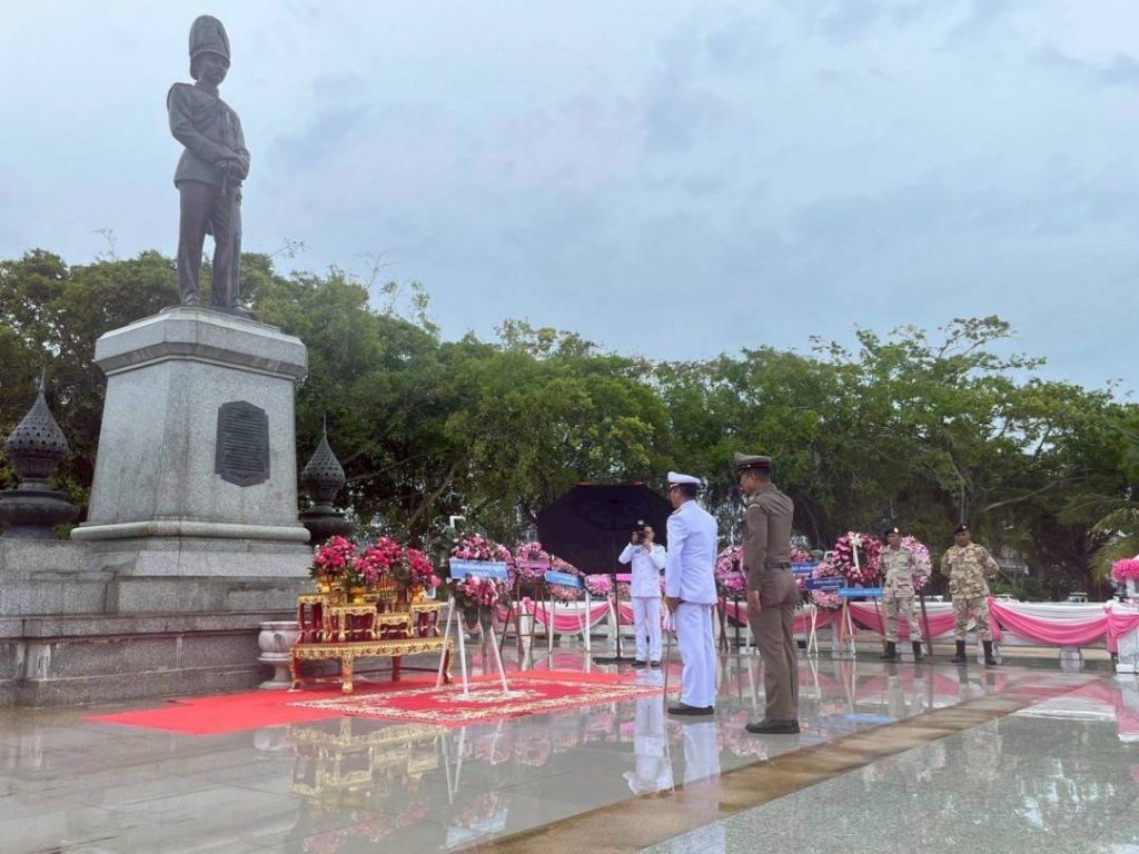 วันที่ 23 ต.ค.2567 เวลา 08.00 น. พ.ต.ท.หญิง สงวนทรัพย์ ลาภสนอง สว.ตม.จว.สุราษฎร์ธานี มอบหมายให้ ร.ต.อ.สิทธิชัย ขำสุข รอง สว.ตม.จว.สุราษฎร์ธานี พร้อมด้วยข้าราชการตำรวจในสังกัดฯ (เกาะพะงัน) เข้าร่วมพิธีวางพวงมาลาเพื่อน้อมรำลึกในวันคล้ายวันสวรรคต พระบาทสมเด็จพระจุลจอมเกล้าเจ้าอยู่หัว ณ ลานพระบรมราชานุสาวรีย์รัชกาลที่ 5 ม.1 ตำบลเกาะพะงัน อ.เกาะพะงัน โดยมี นาย นพดล ขาวมะลิ นายอำเภอเกาะพะงัน จังหวัดสุราษฎร์ธานี เป็นประธาน