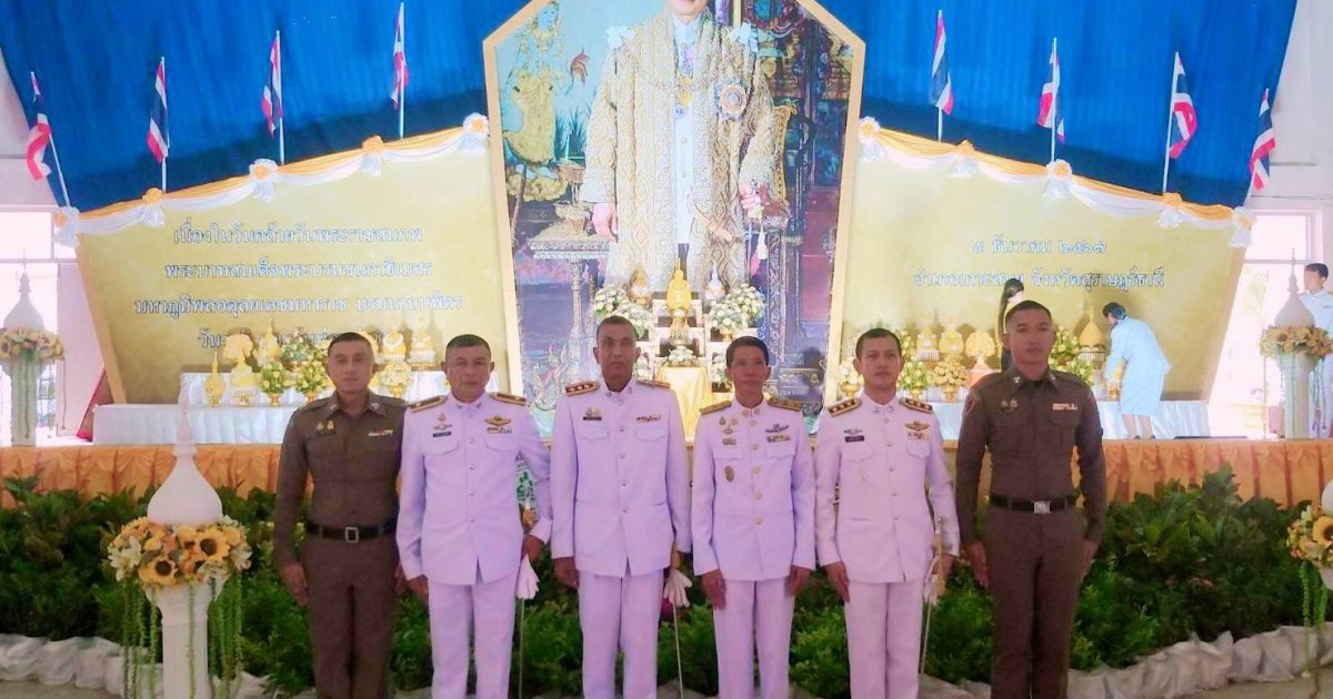 วันที่ 5 ธ.ค.2567 เวลา 07.00 น. ร.ต.อ.ธฤติพัฒน์ สมมะลวน รอง สว.ตม.จว.สุราษฎร์ธานี พร้อมข้าราชการในสังกัดฯ เข้าร่วมพิธีเจริญพระพุทธมนต์ทำบุญตักบาตรถวายพระราชกุศล พิธีวางพานพุ่มดอกไม้และพีธีถวายบังคม เนื่องในวันคล้ายวันพระบรมราชสมภพ พระบาทสมเด็จพระบรมชนกาธิเบศร มหาภูมิพลอดุลยเดชมหาราช บรมนาถบพิตร วันชาติ และวันพ่อแห่งชาติ 5 ธันวาคม 2567 ณ หอประชุมกาญจนาภิเษก ม.3 ต.อ่างทอง อ.เกาะสมุย จว.สุราษฎร์ธานี โดยมีนายชัชชัย มณี ปลัดอาวุโสอำเภอเกาะสมุย ปฎิบัติราชการแทนนายอำเภอเกาะสมุย เป็นประธาน