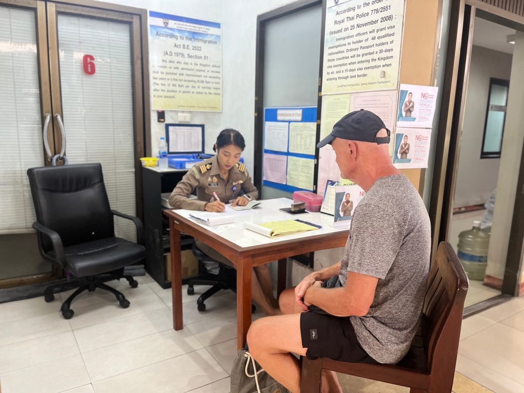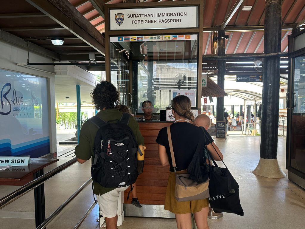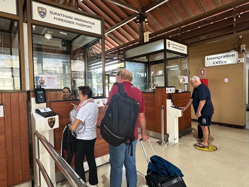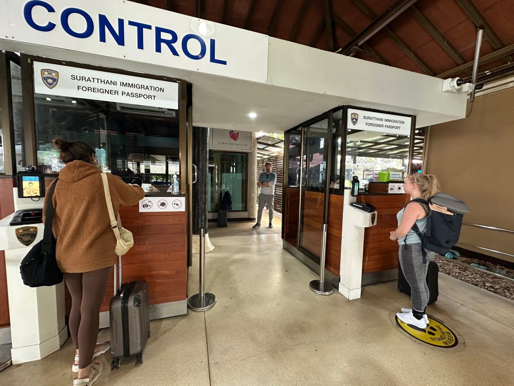 วันที่ 11 มี.ค.68 ร.ต.อ.ปิติพงษ์ เสนชู รอง สว.ตม.จว.สุราษฎร์ธานี ,ร.ต.อ.หญิง ภาวดี หวานทอง ,ร.ต.อ.หญิง จันทร์จิรา วิถี พร้อมด้วยเจ้าหน้าที่ ตม.จว.สุราษฎร์ธานี (ทอ.สมุย) ปฏิบัติหน้าที่ตรวจบุคคลและพาหนะทางอากาศ, Overstay, Visa on arrival พร้อมดูแล ช่วยเหลือ อำนวยความสะดวกและความเรียบร้อยในแถวระหว่างรอเข้าใช้บริการให้กับผู้โดยสารที่เดินทางเข้า-ออก ทางอากาศในเขตพื้นที่รับผิดชอบประจำสนามบินสมุย อ.เกาะสมุย จว.สุราษฎร์ธานี