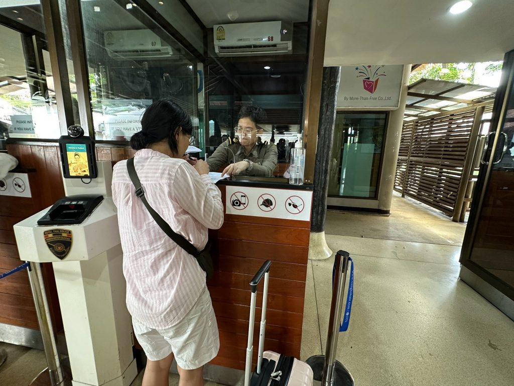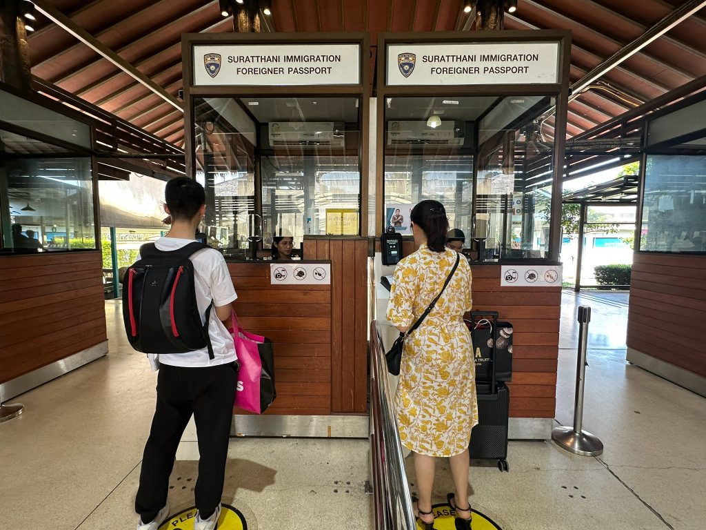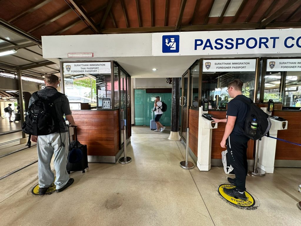 วันที่ 16 มี.ค.68 ร.ต.อ.ธฤติพัฒน์ สมมะลวน รอง สว.ตม.จว.สุราษฎร์ธานี ,ร.ต.อ.หญิง ภาวดี หวานทอง ,ร.ต.อ.หญิง จันทร์จิรา วิถี พร้อมด้วยเจ้าหน้าที่ ตม.จว.สุราษฎร์ธานี (ทอ.สมุย) ปฏิบัติหน้าที่ตรวจบุคคลและพาหนะทางอากาศ, Overstay, Visa on arrival พร้อมดูแล ช่วยเหลือ อำนวยความสะดวกและความเรียบร้อยในแถวระหว่างรอเข้าใช้บริการให้กับผู้โดยสารที่เดินทางเข้า-ออก ทางอากาศในเขตพื้นที่รับผิดชอบประจำสนามบินสมุย อ.เกาะสมุย จว.สุราษฎร์ธานี