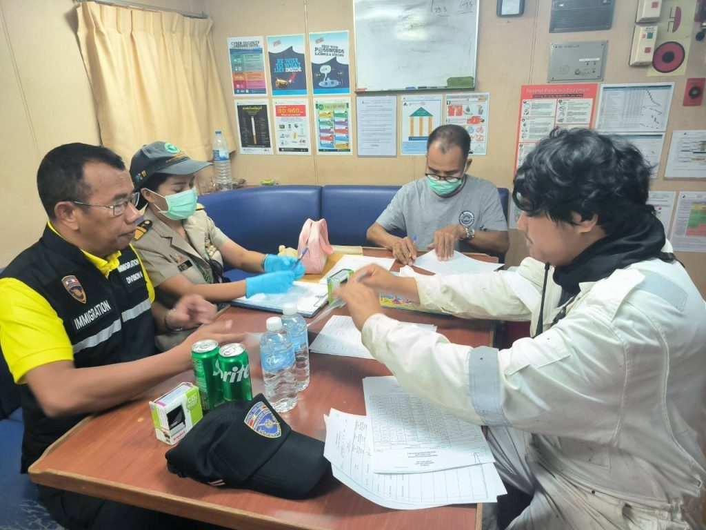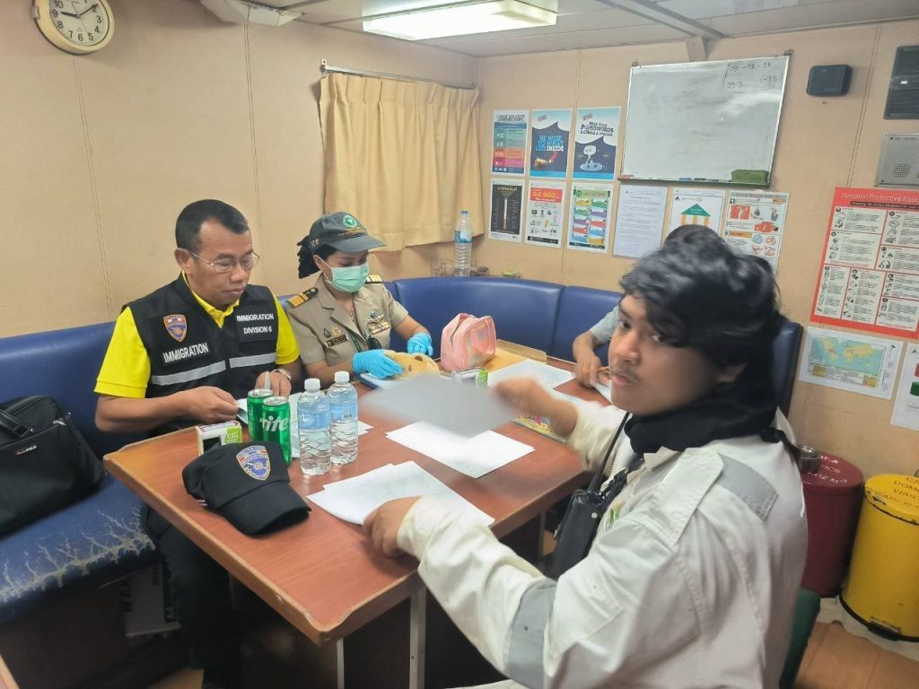 วันที่ 10 มี.ค.68 ร.ต.อ.หญิง ธมนวรรณ มณี รอง สว.ตม.จว.สุราษฎร์ธานี ,ร.ต.ท.ผดุงศักดิ์ แยบกระโทก รอง สว (อก.) ตม.จว.สุราษฎร์ธานี ,ด.ต.หญิง พิมประภา จันทร์ขาว ปฏิบัติหน้าที่ตรวจบุุคคลและพาหนะทางน้ำ ในเขตพื้นที่รับผิดชอบ ประจำท่าเรืออ่าวบ้านดอน อ.เมือง จว.สุราษฎร์ธานี