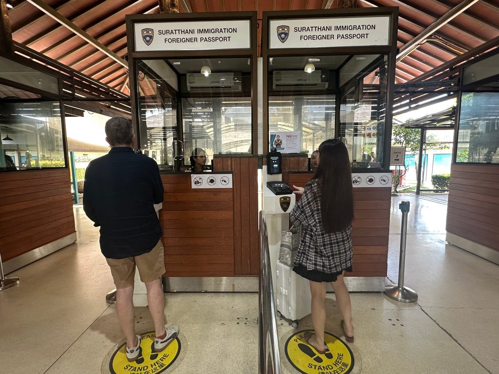 วันที่ 1 มี.ค.68 ร.ต.อ.ปิติพงษ์ เสนชู รอง สว.ตม.จว.สุราษฎร์ธานี ,ร.ต.อ.หญิง ภาวดี หวานทอง ,ร.ต.อ.หญิง จันทร์จิรา วิถี พร้อมด้วยเจ้าหน้าที่ ตม.จว.สุราษฎร์ธานี (ทอ.สมุย) ปฏิบัติหน้าที่ตรวจบุคคลและพาหนะทางอากาศ, Overstay, Visa on arrival พร้อมดูแล ช่วยเหลือ อำนวยความสะดวกและความเรียบร้อยในแถวระหว่างรอเข้าใช้บริการให้กับผู้โดยสารที่เดินทางเข้า-ออก ทางอากาศในเขตพื้นที่รับผิดชอบประจำสนามบินสมุย อ.เกาะสมุย จว.สุราษฎร์ธานี