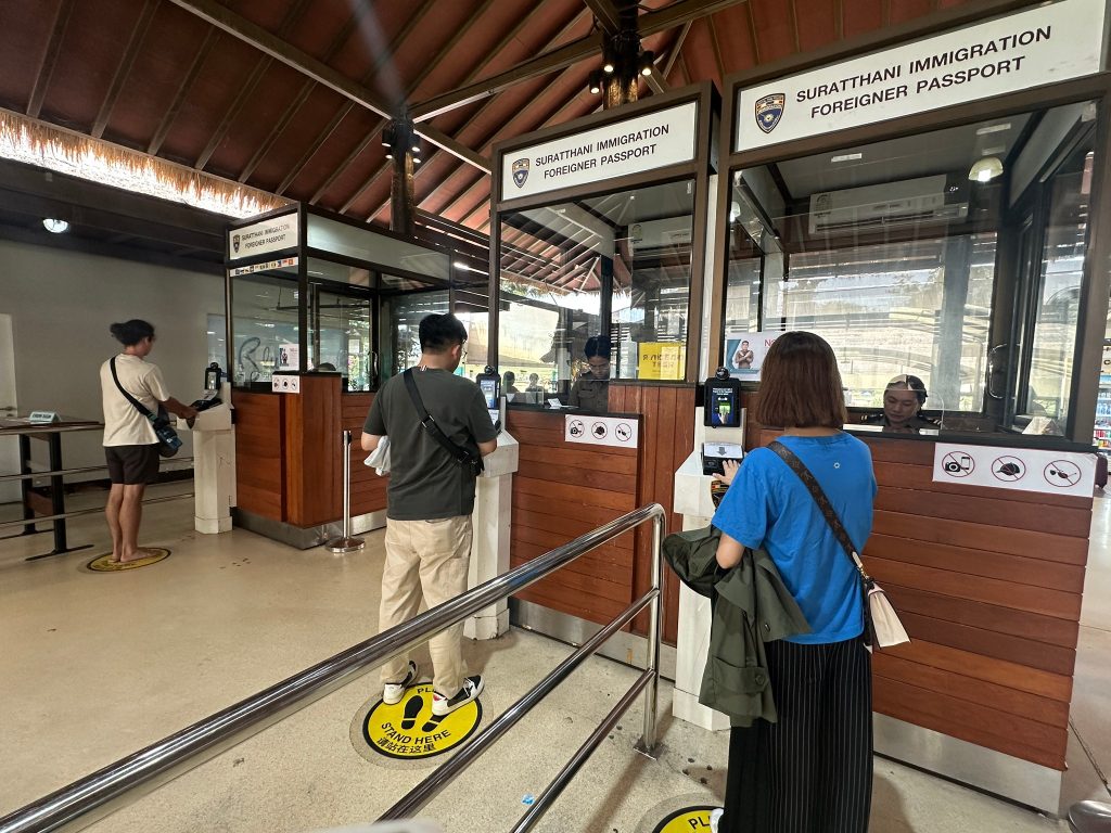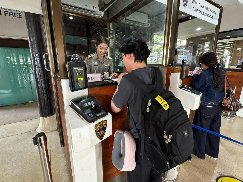วันที่ 17 มี.ค.68 ร.ต.อ.ธฤติพัฒน์ สมมะลวน รอง สว.ตม.จว.สุราษฎร์ธานี ,ร.ต.อ.หญิง ภาวดี หวานทอง ,ร.ต.อ.หญิง จันทร์จิรา วิถี พร้อมด้วยเจ้าหน้าที่ ตม.จว.สุราษฎร์ธานี (ทอ.สมุย) ปฏิบัติหน้าที่ตรวจบุคคลและพาหนะทางอากาศ, Overstay, Visa on arrival พร้อมดูแล ช่วยเหลือ อำนวยความสะดวกและความเรียบร้อยในแถวระหว่างรอเข้าใช้บริการให้กับผู้โดยสารที่เดินทางเข้า-ออก ทางอากาศในเขตพื้นที่รับผิดชอบประจำสนามบินสมุย อ.เกาะสมุย จว.สุราษฎร์ธานี