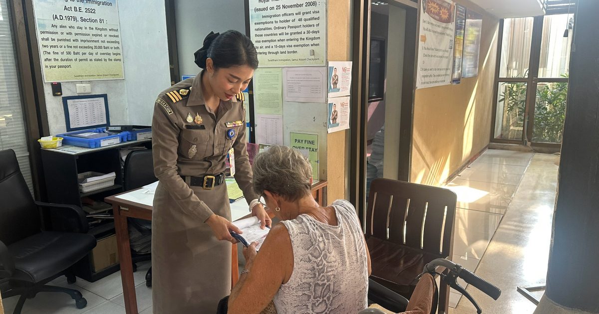 วันที่ 17 มี.ค.68 ร.ต.อ.ธฤติพัฒน์ สมมะลวน รอง สว.ตม.จว.สุราษฎร์ธานี ,ร.ต.อ.หญิง ภาวดี หวานทอง ,ร.ต.อ.หญิง จันทร์จิรา วิถี พร้อมด้วยเจ้าหน้าที่ ตม.จว.สุราษฎร์ธานี (ทอ.สมุย) ปฏิบัติหน้าที่ตรวจบุคคลและพาหนะทางอากาศ, Overstay, Visa on arrival พร้อมดูแล ช่วยเหลือ อำนวยความสะดวกและความเรียบร้อยในแถวระหว่างรอเข้าใช้บริการให้กับผู้โดยสารที่เดินทางเข้า-ออก ทางอากาศในเขตพื้นที่รับผิดชอบประจำสนามบินสมุย อ.เกาะสมุย จว.สุราษฎร์ธานี