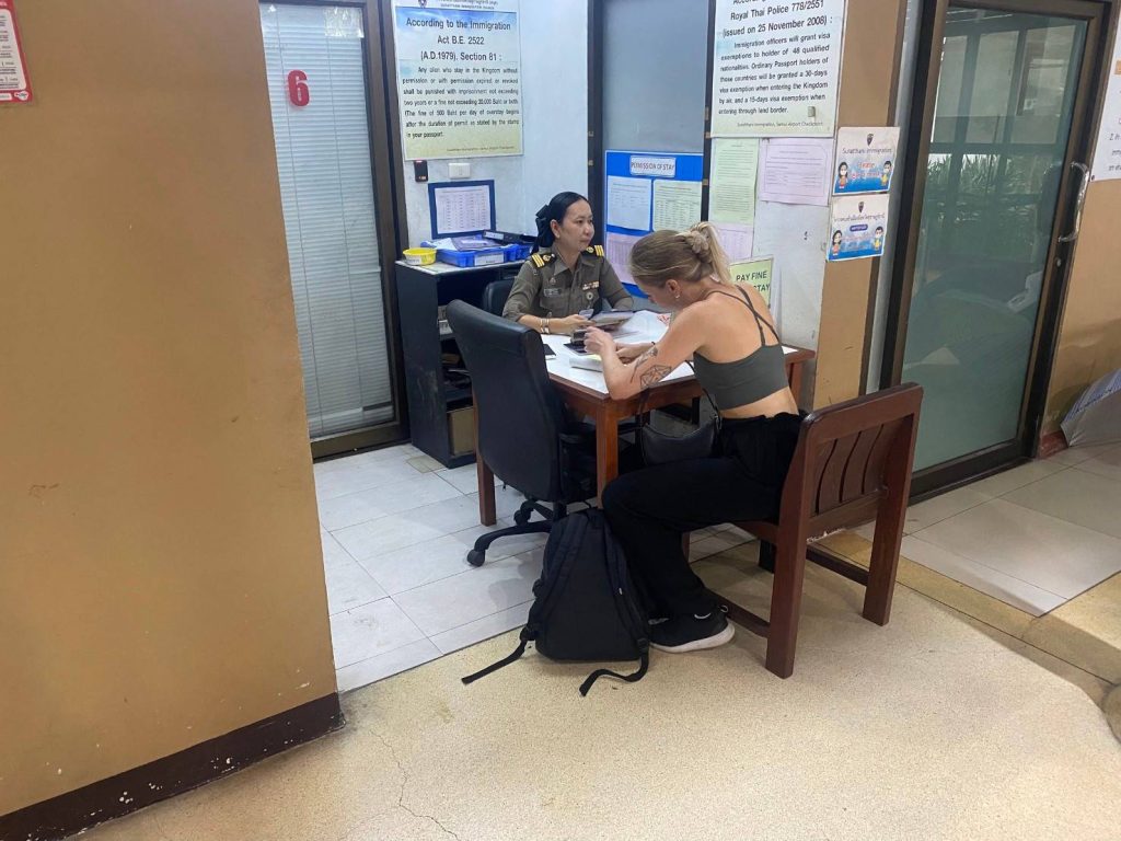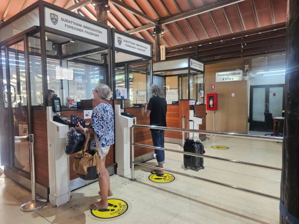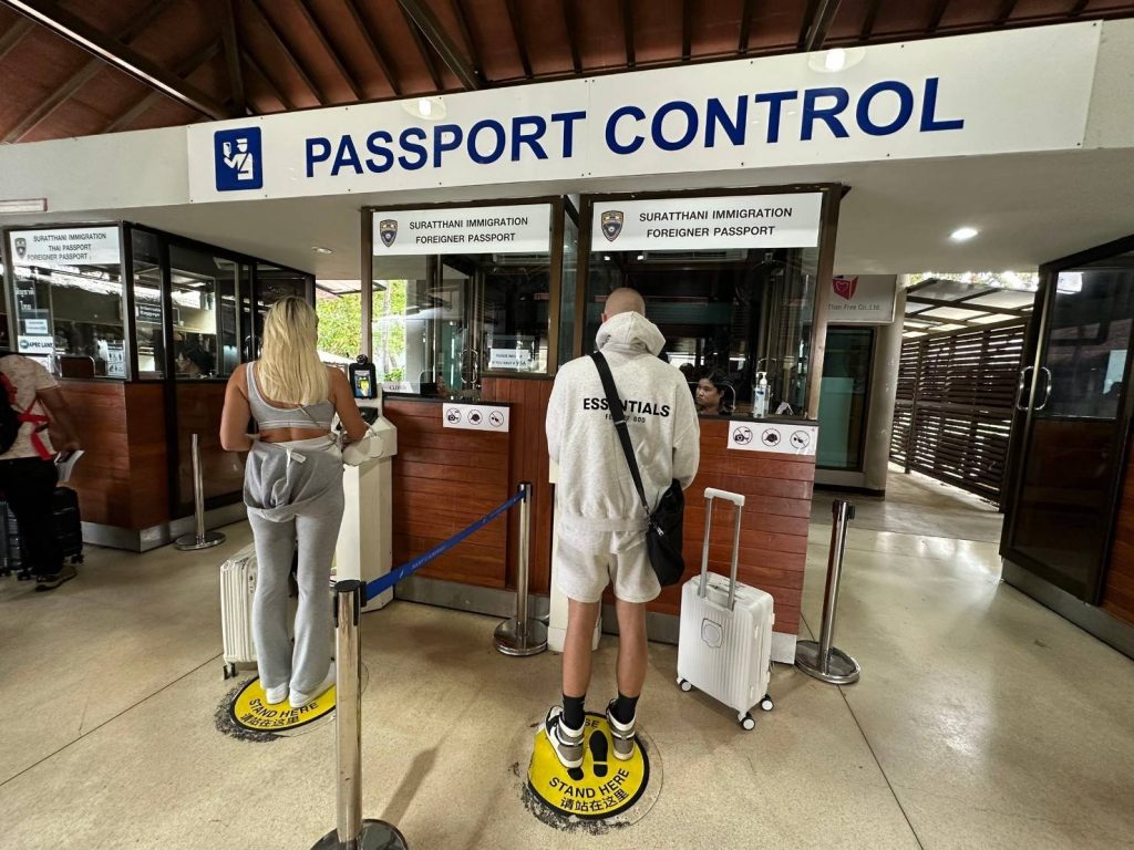 วันที่ 4 มี.ค.68 ร.ต.อ.ปิติพงษ์ เสนชู ,ร.ต.อ.หญิง ภาวดี หวานทอง ,ร.ต.อ.หญิง จันทร์จิรา วิถี รอง สว.ตม. จว.สุราษฎร์ธานี พร้อมด้วยเจ้าหน้าที่ ตม.จว. สุราษฎร์ธานี (ทอ.สมุย) ปฏิบัติหน้าที่ตรวจบุุคคลและพาหนะทางอากาศ, Overstay, Visa on arrival พร้อมดูแล ช่วยเหลือ อำนวยความสะดวกและความเรียบร้อยในแถวระหว่างรอเข้าใช้บริการให้กับผู้โดยสารที่เดินทางเข้า-ออก ทางอากาศในเขตพื้นที่รับผิดชอบประจำสนามบินสมุย อ.เกาะสมุย จว.สุราษฎร์ธานี