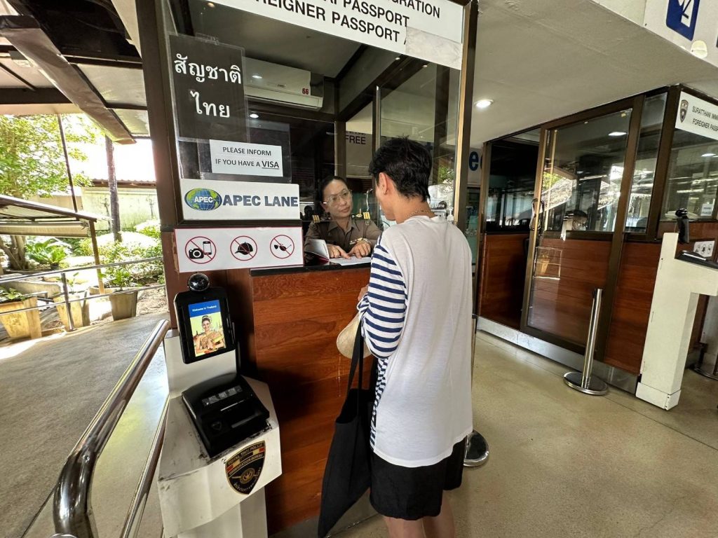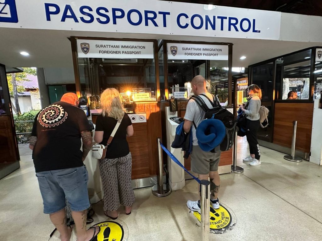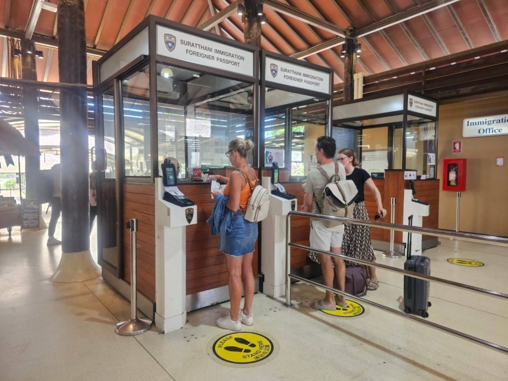 วันที่ 5 มี.ค.68 ร.ต.อ.ปิติพงษ์ เสนชู ,ร.ต.อ.หญิง ภาวดี หวานทอง ,ร.ต.อ.หญิง จันทร์จิรา วิถี รอง สว.ตม. จว.สุราษฎร์ธานี พร้อมด้วยเจ้าหน้าที่ ตม.จว. สุราษฎร์ธานี (ทอ.สมุย) ปฏิบัติหน้าที่ตรวจบุุคคลและพาหนะทางอากาศ, Overstay, Visa on arrival พร้อมดูแล ช่วยเหลือ อำนวยความสะดวกและความเรียบร้อยในแถวระหว่างรอเข้าใช้บริการให้กับผู้โดยสารที่เดินทางเข้า-ออก ทางอากาศในเขตพื้นที่รับผิดชอบประจำสนามบินสมุย อ.เกาะสมุย จว.สุราษฎร์ธานี