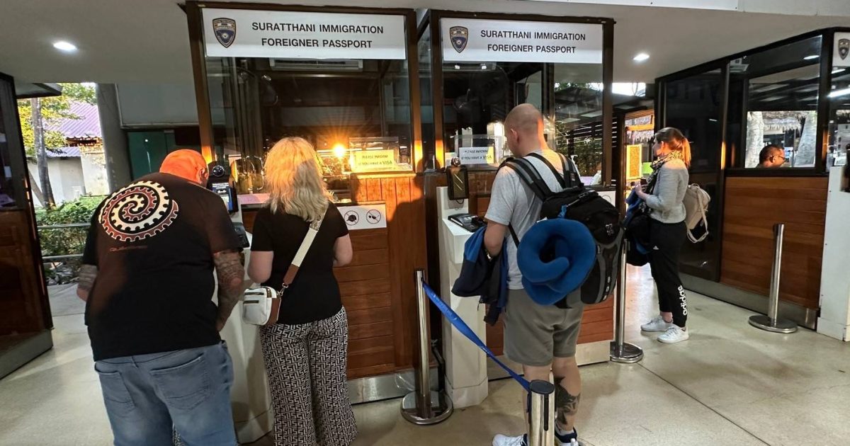 วันที่ 5 มี.ค.68 ร.ต.อ.ปิติพงษ์ เสนชู ,ร.ต.อ.หญิง ภาวดี หวานทอง ,ร.ต.อ.หญิง จันทร์จิรา วิถี รอง สว.ตม. จว.สุราษฎร์ธานี พร้อมด้วยเจ้าหน้าที่ ตม.จว. สุราษฎร์ธานี (ทอ.สมุย) ปฏิบัติหน้าที่ตรวจบุุคคลและพาหนะทางอากาศ, Overstay, Visa on arrival พร้อมดูแล ช่วยเหลือ อำนวยความสะดวกและความเรียบร้อยในแถวระหว่างรอเข้าใช้บริการให้กับผู้โดยสารที่เดินทางเข้า-ออก ทางอากาศในเขตพื้นที่รับผิดชอบประจำสนามบินสมุย อ.เกาะสมุย จว.สุราษฎร์ธานี