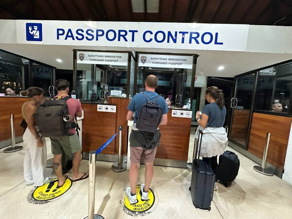 วันที่ 10 มี.ค.68 ร.ต.อ.ปิติพงษ์ เสนชู ,ร.ต.อ.หญิง ภาวดี หวานทอง ,ร.ต.อ.หญิง จันทร์จิรา วิถี รอง สว.ตม. จว.สุราษฎร์ธานี พร้อมด้วยเจ้าหน้าที่ ตม.จว. สุราษฎร์ธานี (ทอ.สมุย) ปฏิบัติหน้าที่ตรวจบุุคคลและพาหนะทางอากาศ, Overstay, Visa on arrival พร้อมดูแล ช่วยเหลือ อำนวยความสะดวกและความเรียบร้อยในแถวระหว่างรอเข้าใช้บริการให้กับผู้โดยสารที่เดินทางเข้า-ออก ทางอากาศในเขตพื้นที่รับผิดชอบประจำสนามบินสมุย อ.เกาะสมุย จว.สุราษฎร์ธานี