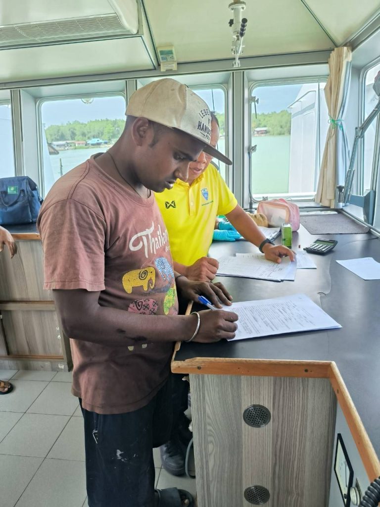 วันที่ 12 มี.ค.68 ร.ต.อ.หญิง ธมนวรรณ มณี รอง สว.ตม.จว.สุราษฎร์ธานี ,ร.ต.ท.ผดุงศักดิ์ แยบกระโทก รอง สว (อก.) ตม.จว.สุราษฎร์ธานี ,ด.ต.หญิง พิมประภา จันทร์ขาว ปฏิบัติหน้าที่ตรวจบุคคลและพาหนะทางน้ำ ในเขตพื้นที่รับผิดชอบ ประจำท่าเรืออ่าวบ้านดอน อ.เมือง จว.สุราษฎร์ธานี