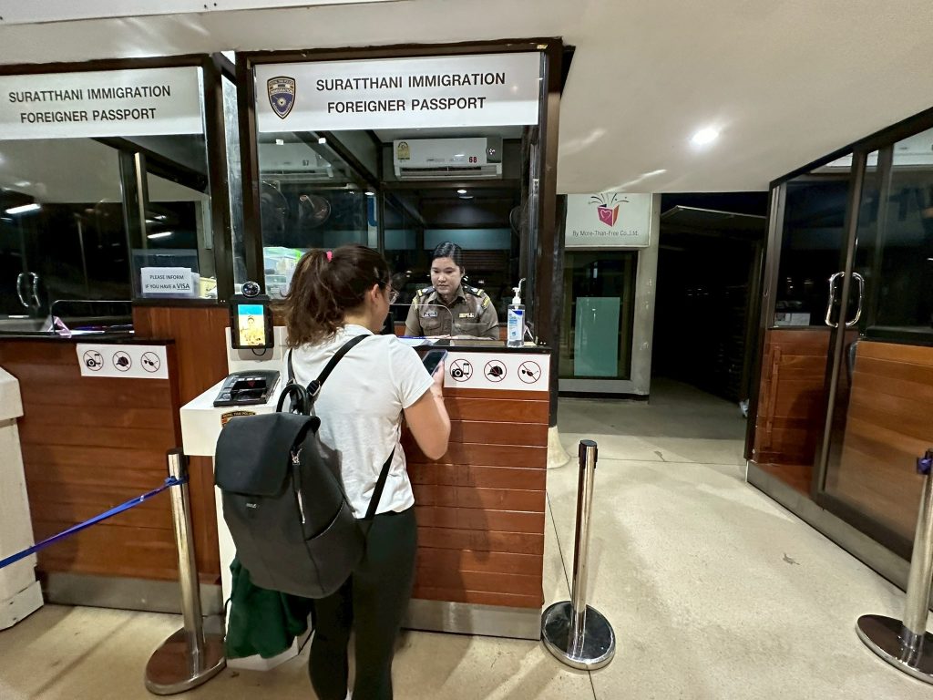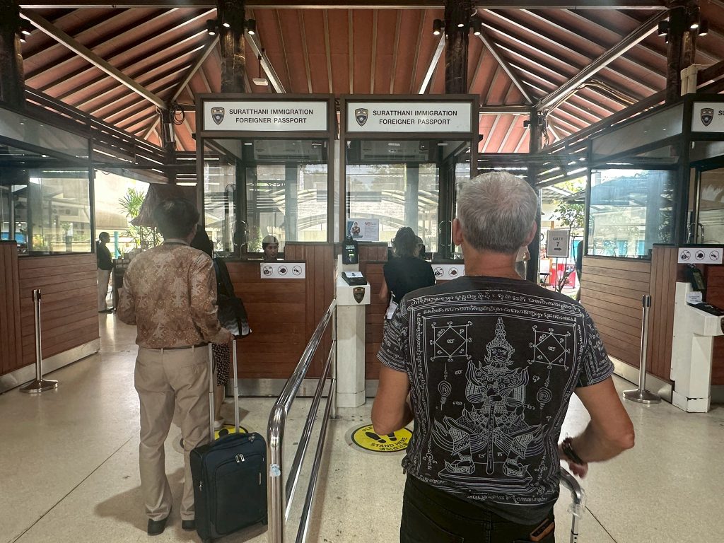 วันที่ 31 มี.ค.68 ร.ต.อ.ธฤติพัฒน์ สมมะลวน รอง สว.ตม.จว.สุราษฎร์ธานี ,ร.ต.อ.หญิง ภาวดี หวานทอง ,ร.ต.อ.หญิง จันทร์จิรา วิถี พร้อมด้วยเจ้าหน้าที่ ตม.จว.สุราษฎร์ธานี (ทอ.สมุย) ปฏิบัติหน้าที่ตรวจบุคคลและพาหนะทางอากาศ, Overstay, Visa on arrival พร้อมดูแล ช่วยเหลือ อำนวยความสะดวกและความเรียบร้อยในแถวระหว่างรอเข้าใช้บริการให้กับผู้โดยสารที่เดินทางเข้า-ออก ทางอากาศในเขตพื้นที่รับผิดชอบประจำสนามบินสมุย อ.เกาะสมุย จว.สุราษฎร์ธานี