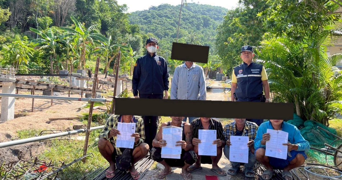 – สถานที่ก่อสร้าง ตั้งอยู่บริเวณ แฮปปี้บังกะโล ม.3 ต.เกาะเต่า อ.เกาะพะงัน จว.สุราษฎร์ธานี พบแรงงานต่างด้าวสัญชาติเมียนมา จำนวน 5 ราย ชาย 5 ราย โดยมีนาย เอกวี คุณมี เป็นผู้นำตรวจ