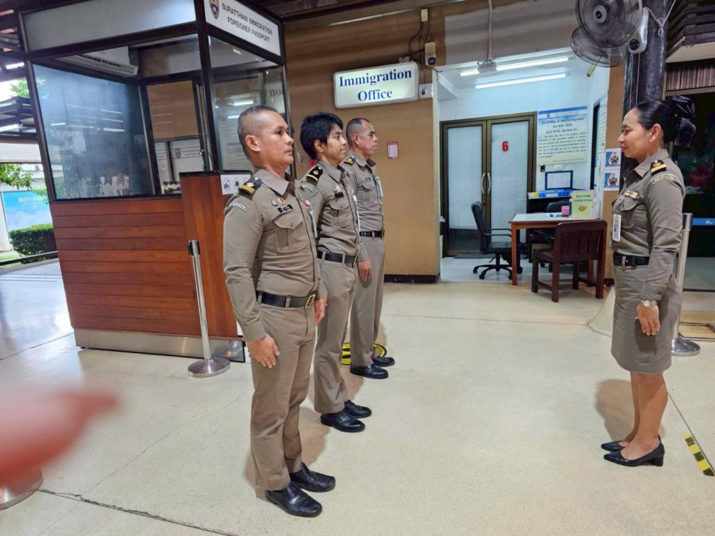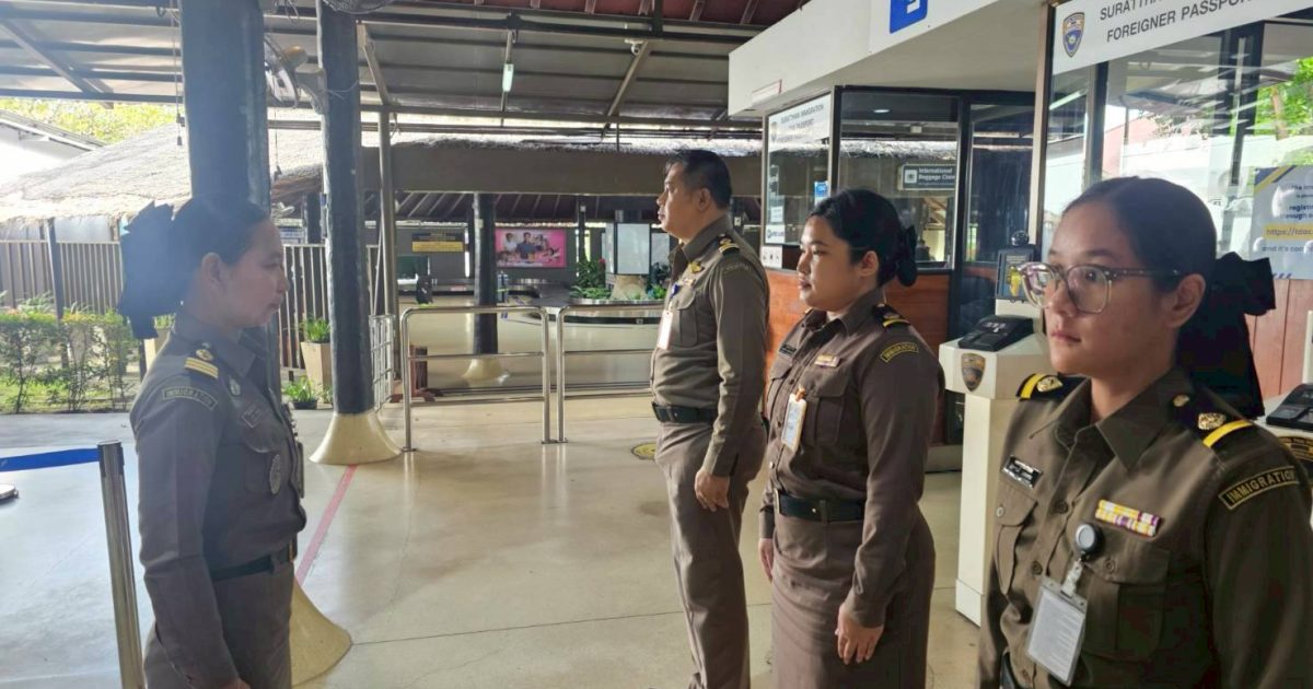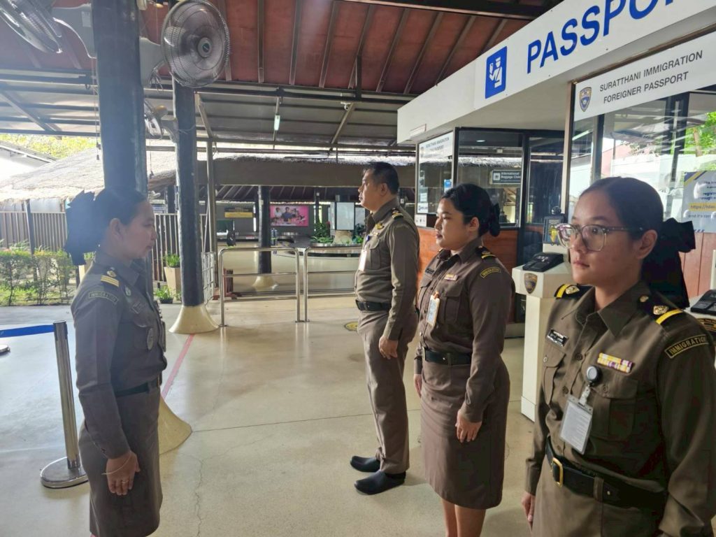วันที่ 28/10/2568 เวลา 06.00 น. ร.ต.อ.หญิง ภาวดี หวานทอง รอง สว.ตม.จว.สุราษฎร์ธานี ได้รับนโยบายจากผู้บังคับบัญชาให้กำชับการปฏิบัติเกี่ยวกับการตรวจบุคคลและพาหนะ ให้กับเจ้าหน้าที่ตำรวจในสังกัด ตม.จว.สุราษฎร์ธานี ที่ปฏิบัติหน้าที่ประจำสนามบินสมุย กรณีผู้โดยสารเดินทางเข้า-ออกประเทศ โดยใช้ฟรีวีซ่า เข้า-ออกประเทศติดต่อกันมากกว่า 2 ครั้ง โดยเฉพาะผู้โดยสารสัญชาติเฝ้าระวัง ให้เจ้าหน้าที่คัดกรอง สัมภาษณ์ ซักถามวัตถุประสงค์การเดินทางโดยละเอียดแนะนำให้ผู้โดยสารใช้วีซ่าให้ตรงตามวัตถุประสงค์ของการเดินทางเข้าประเทศ และให้เจ้าหน้าที่ใช้ความรู้ความละเอียดรอบคอบในการตรวจอนุญาตให้ถูกต้อง