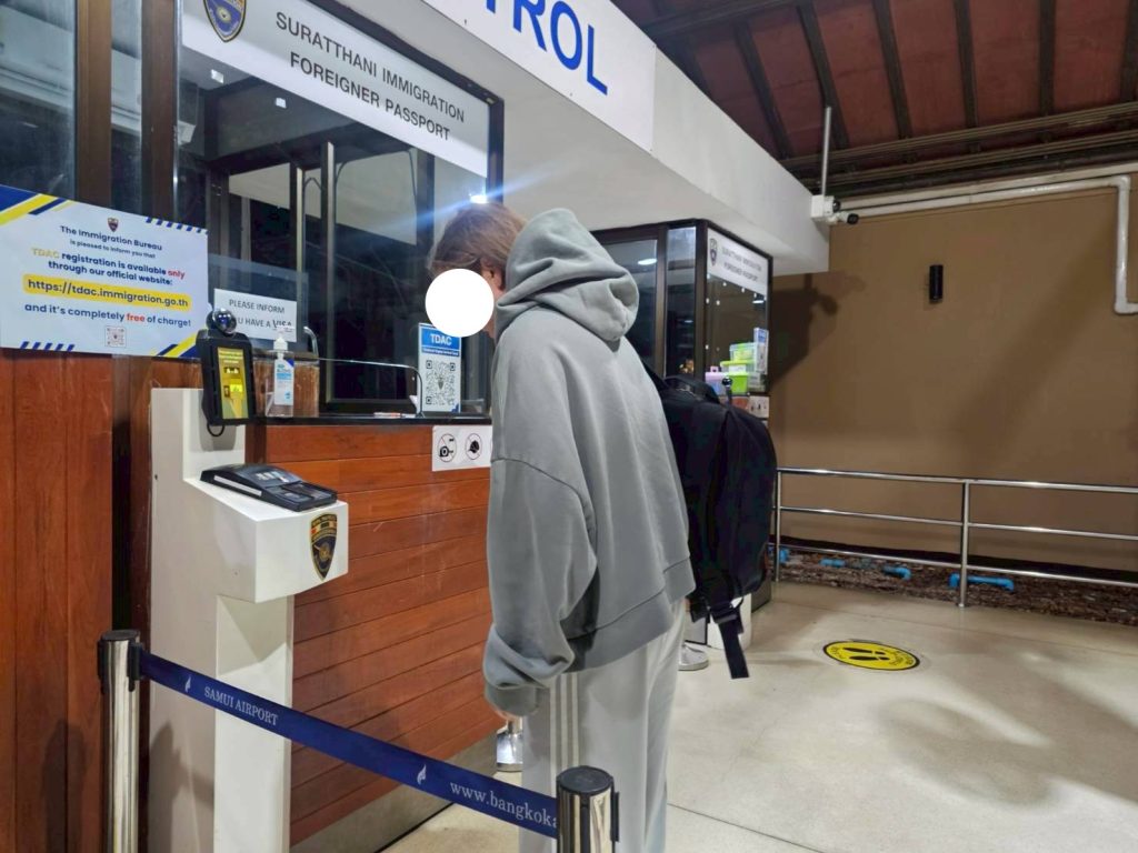 วันที่ 31/10/2568 เวลา 20.42 น. ร.ต.อ.หญิง ภาวดี หวานทอง รอง สว.ตม.จว.สุราษฎร์ธานี พร้อมด้วยเจ้าหน้าที่ ตม.จว. สุราษฎร์ธานี (ทอ.สมุย) ปฏิบัติหน้าที่ตรวจบุคคลและพาหนะทางอากาศให้กับผู้โดยสารที่เดินทางเข้า เที่ยวบิน PG962 ในเขตพื้นที่รับผิดชอบประจำสนามบินสมุย