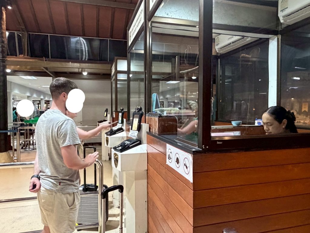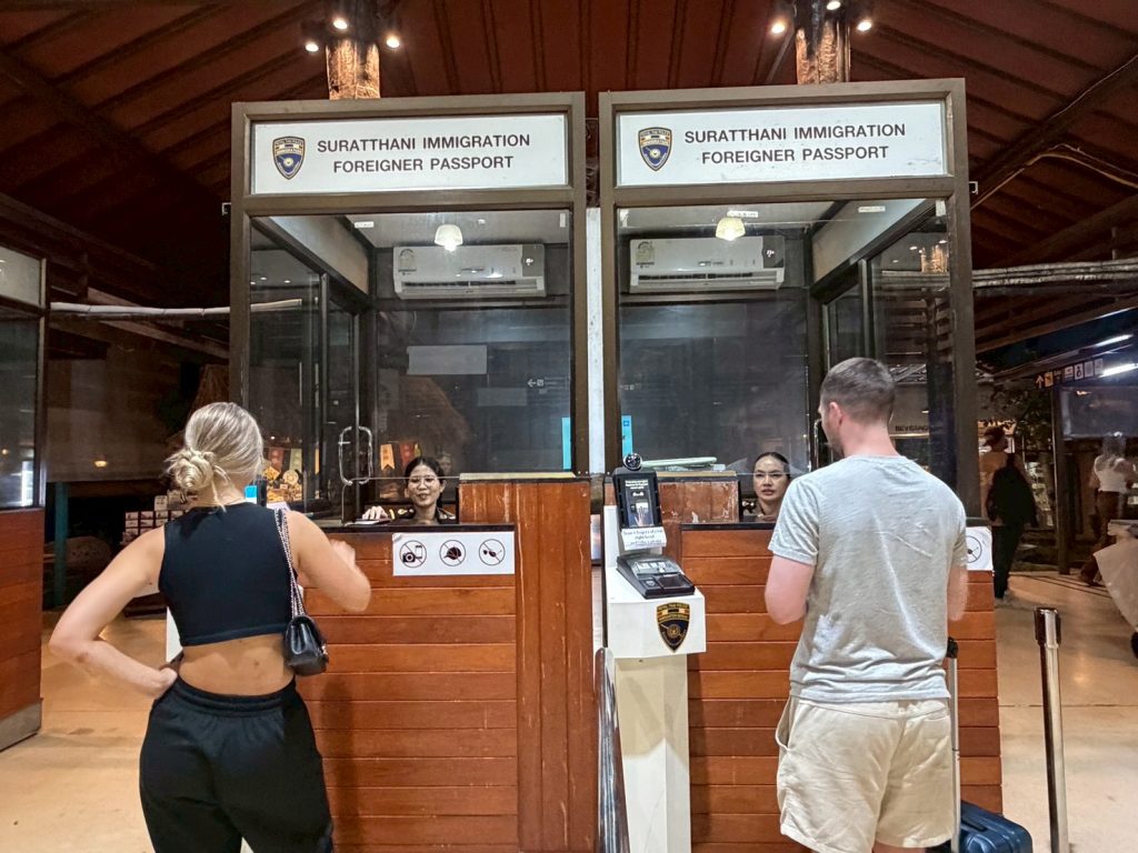 วันที่ 6/11/2568 เวลา 17.30 น. ร.ต.อ.ธฤติพัฒน์ สมมะลวน รอง สว.ตม.จว.สุราษฎร์ธานี พร้อมด้วยเจ้าหน้าที่ ตม.จว.สุราษฎร์ธานี (ทอ.สมุย) ปฏิบัติหน้าที่ตรวจบุคคลและพาหนะทางอากาศให้กับผู้โดยสารที่เดินทางออกเที่ยวบิน TR649 ในเขตพื้นที่รับผิดชอบประจำสนามบินสมุย