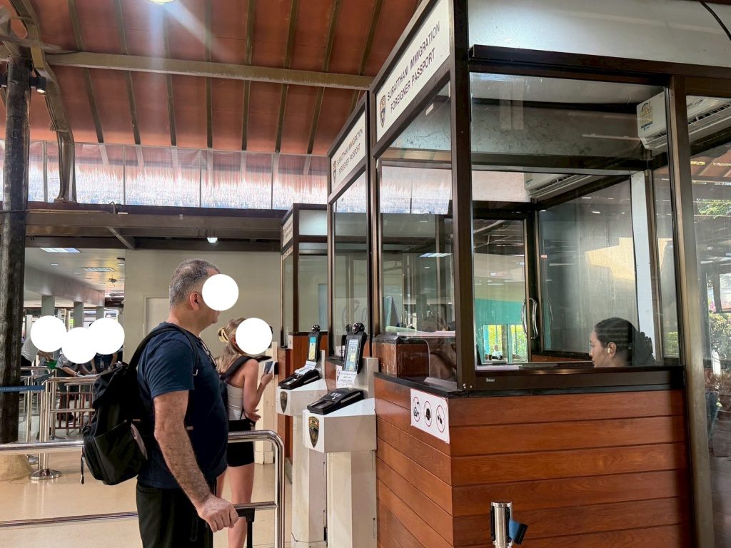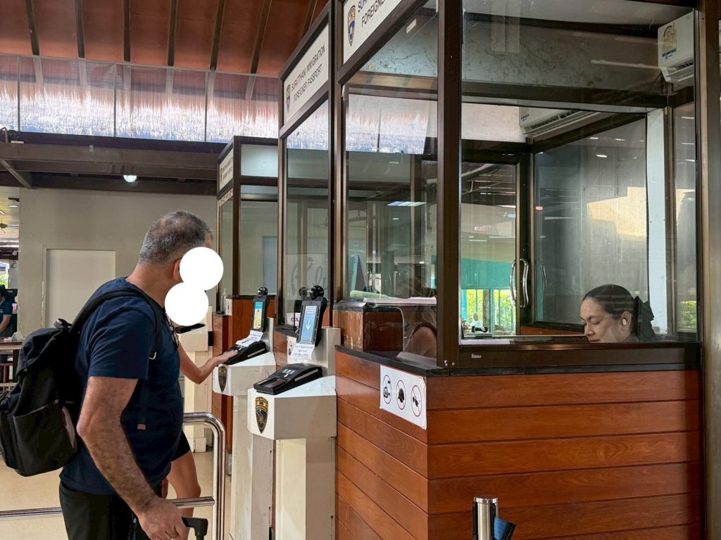 วันที่ 9/11/2568 เวลา 16.00 น. ร.ต.อ.ธฤติพัฒน์ สมมะลวน รอง สว.ตม.จว.สุราษฎร์ธานี พร้อมด้วยเจ้าหน้าที่ ตม.จว.สุราษฎร์ธานี (ทอ.สมุย) ปฏิบัติหน้าที่ตรวจบุคคลและพาหนะทางอากาศให้กับผู้โดยสารที่เดินทางออกเที่ยวบิน PG961 ในเขตพื้นที่รับผิดชอบประจำสนามบินสมุย